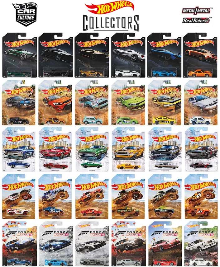 В каждой коллекции представлены пять известных автомобилей с реалистичными деталями, которые нравятся коллекционерам всех возрастов. Каждая модель имеет специальные украшения и пронумерованную упаковку. Вы можете добавить их в свою коллекцию! Каждый Продается отдельно и при наличии. Цвета и украшения могут отличаться.