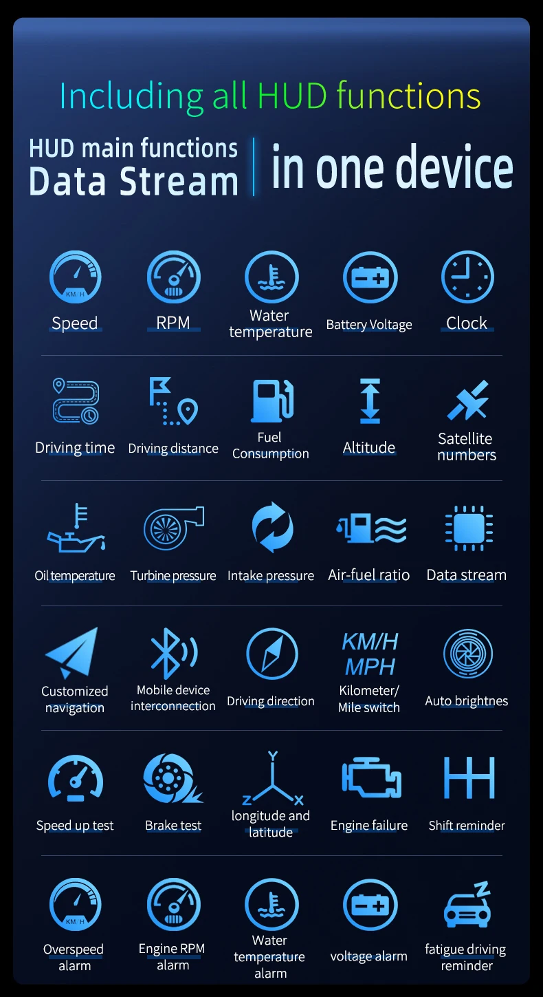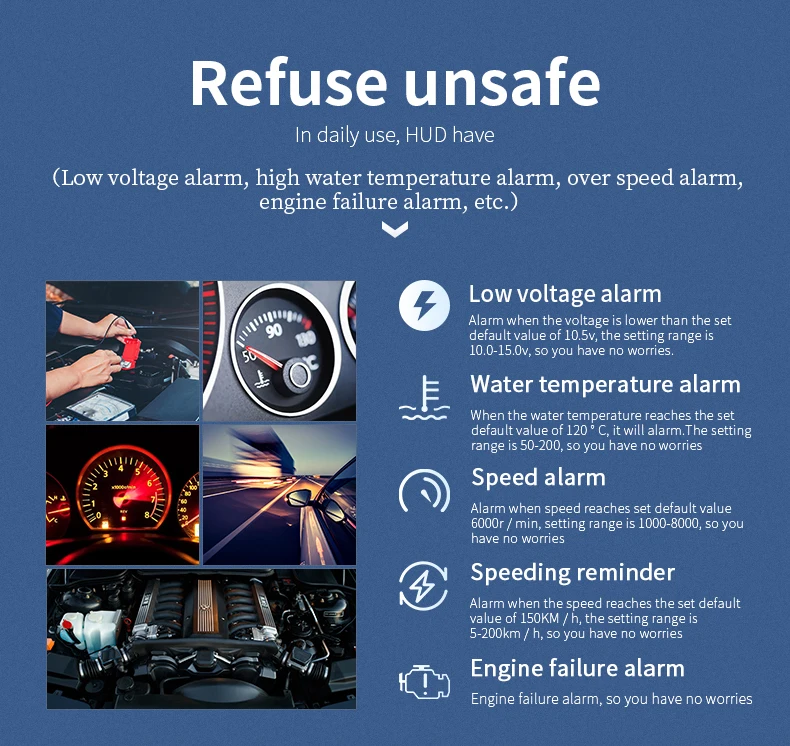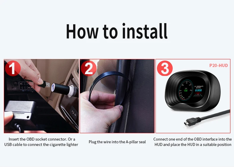 4. Легко установить, нужно только подключить HUD с автомобильным OBD портом с помощью OBD кабеля, HUD будет отображаться, когда автомобильный двигатель ВКЛ/ВЫКЛ