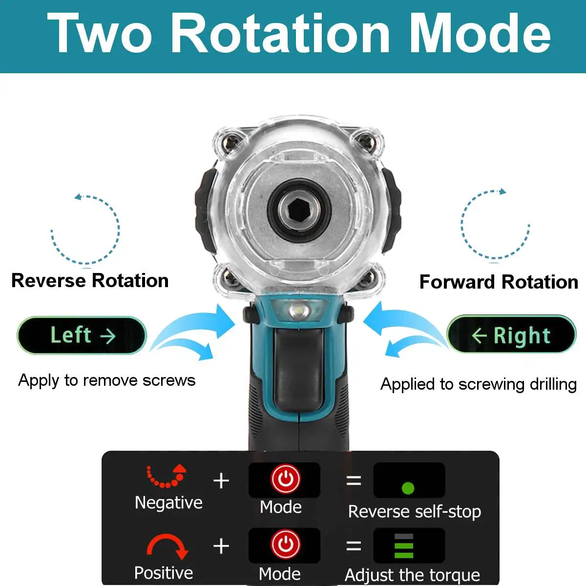 ▲ Высокий крутящий момент 800 нм, бесступенчатый переключатель переключения скорости.