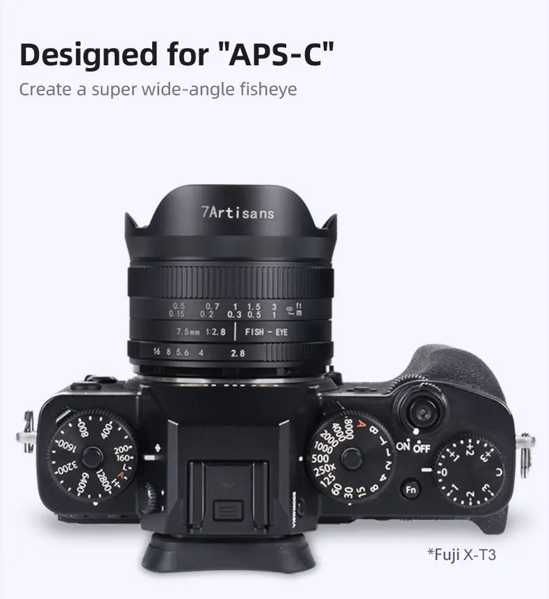 В тех случаях, когда вы используете 7 ремесленников 7,5 мм/f2.8 на весь экран Рамка для камеры, пожалуйста, найдите камеру в APS-C режим.