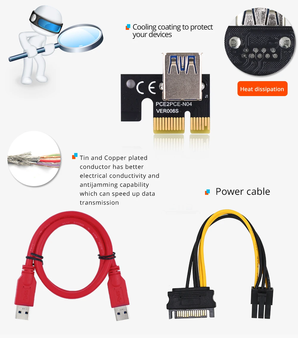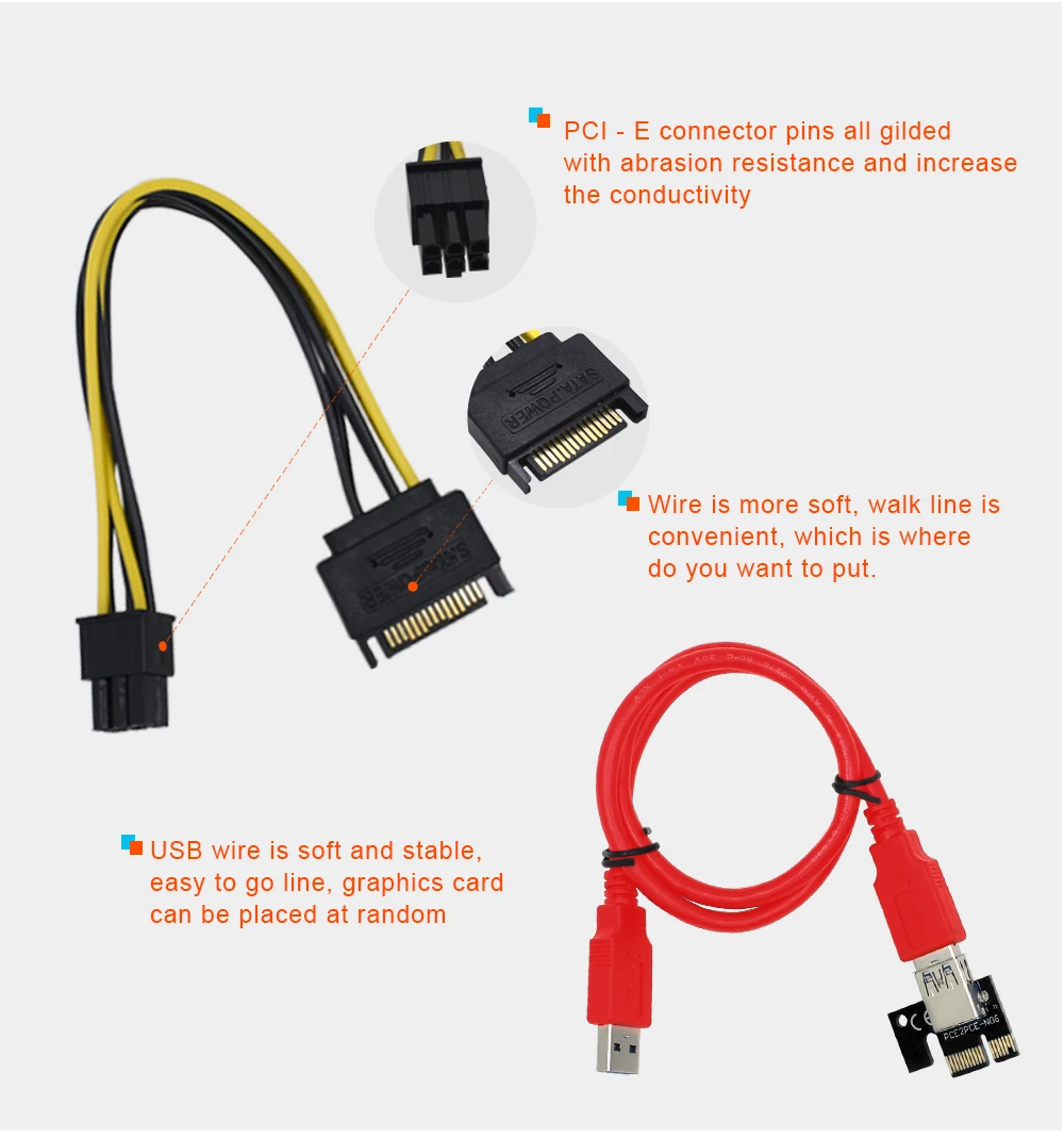 TISHRIC Riser 011 PCIE PCI E Express PCI-E 16x Riser GPU видеокарта Riser Dual 6Pin видеокарта для майнинга биткойнов