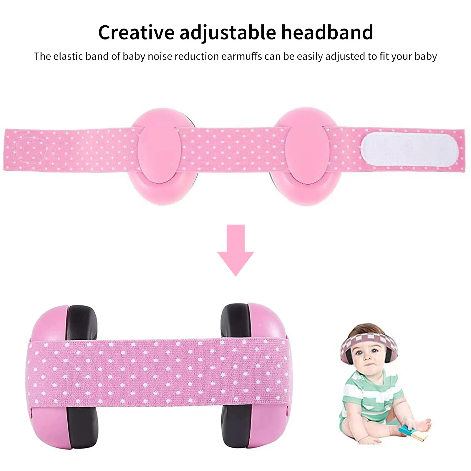 Креативная регулируемая повязка на голову: голова младенцев до 24 месяцев очень хрупкая. Важно, чтобы сверху не было давления. Эластичные ремешки наушников для снижения уровня шума для ребенка могут быть легко отрегулированы, чтобы соответствовать уху ребенка (3-24 месяца), и не сжимают голову ребенка, как обычные наушники. Милый ребенок заслуживает милого дизайна!