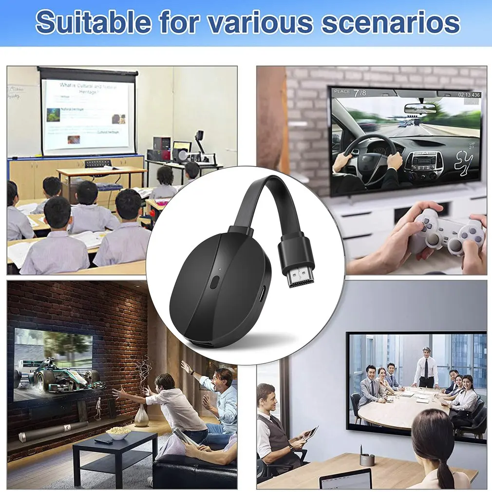 Особенности: 1. Материал: этот же экран изготовлен из хорошего материала, который является прочным. 2. Беспроводная проекция экрана: Беспроводная проекция экрана более бесплатна и удобна. 3. Поддержка разрешения 1080p: изображение четкое и деликатное, поддержка разрешения 1080P, праздник высокой четкости, даст вам визуальный опыт на уровне кинотеатра. 4. Совместимость: для системы Android поддерживает большинство приложений. Система IOS не поддерживает платные приложения. 5. Подходит для: подходит для бизнес-офиса, домашних кинотеатров, развлекательных игр, образования и обучения. Описание: Благодаря легкому и портативному размеру, это же экранное устройство легко и удобно носить с собой и использовать. Характеристики: Разрешение выхода: 1080p Условия обслуживания: в помещении Интерфейс: HDMI-совместимый Память: 128 Мб Посылка включает в себя: 1 * То же устройство экрана