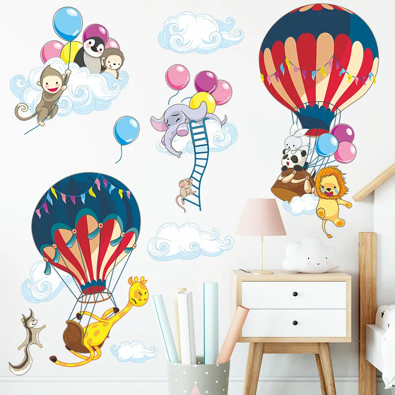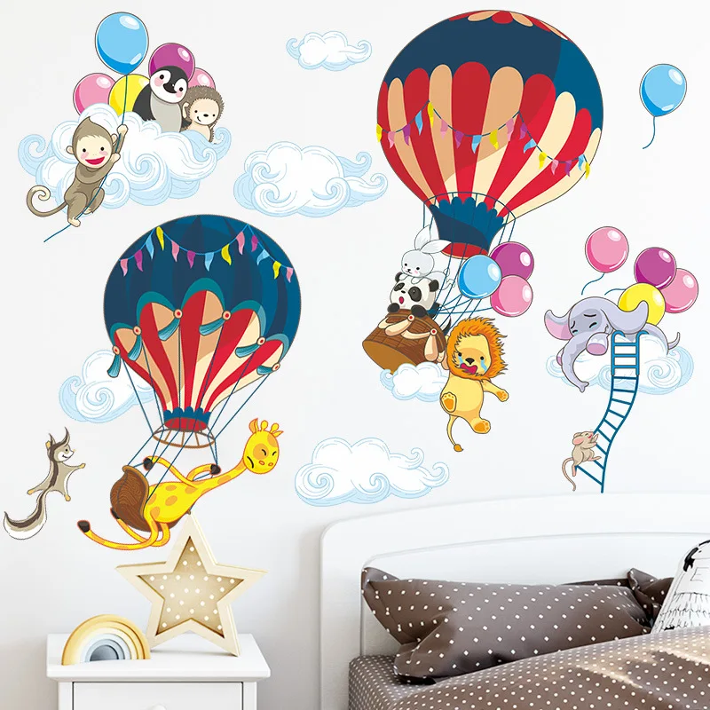 Воздушный шар аниамлы настенные Стикеры для детских комнат украшения детской комнаты съемные DIY художественные настенные наклейки домашний декор