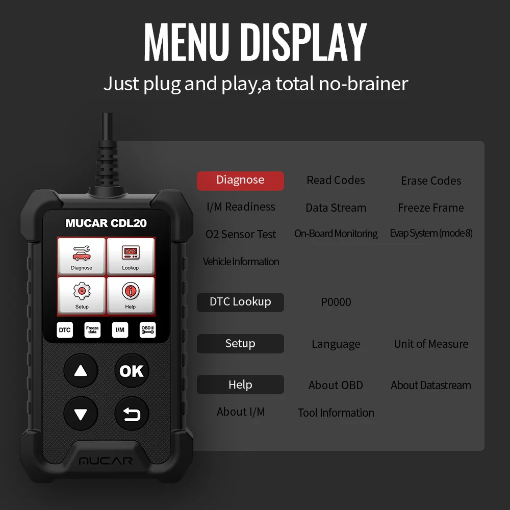 MUCAR CDL20 только Диагностика системы двигателя, если нужна подушка безопасности, тормоз или другая система диагностики, пожалуйста, свяжитесь с продавцом.