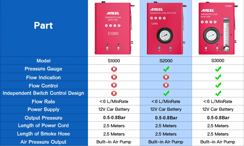 ANCEL S2000 Automotive Smoke Leak Detector is a professional car pipeline smoke leak detector tool .It can quickly perform various tests on automobiles motorcycles, and accurately locate leaks on the vehicle pipeline system.