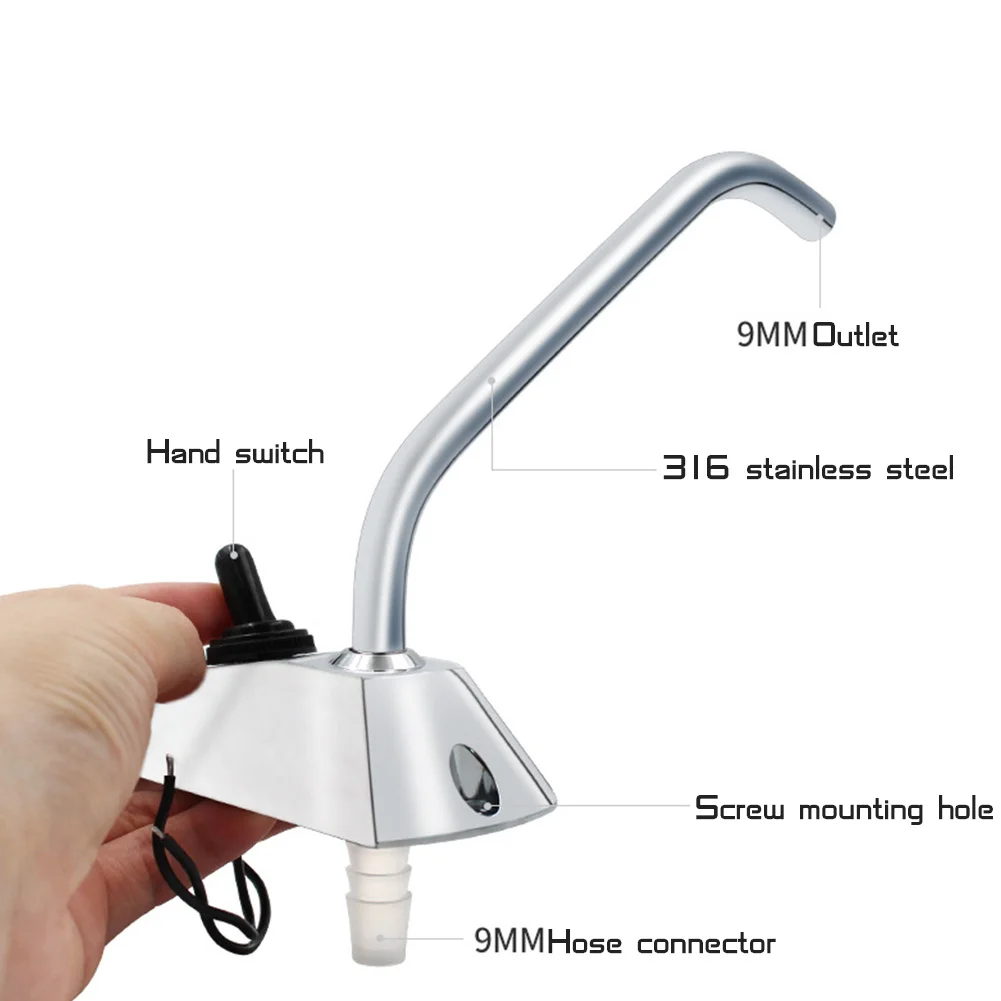 Новинка и высокое качество Цинковый сплав металлический кран сиденье и нержавеющая сталь качели рот Встроенный 12v тумблер на основание крана Полное вращение на 360 градусов Элегантный дизайн гусиная шея, подходит для путешествий трейлеров, кемперов, мобильных домов, лодок различных размеров, караванов, RVs, RVs и т. Д. Простота в обслуживании, отличная коррозионная стойкость и антикоррозийное покрытие, поможет вам легко очистить кран при ежедневном использованииСпецификация: