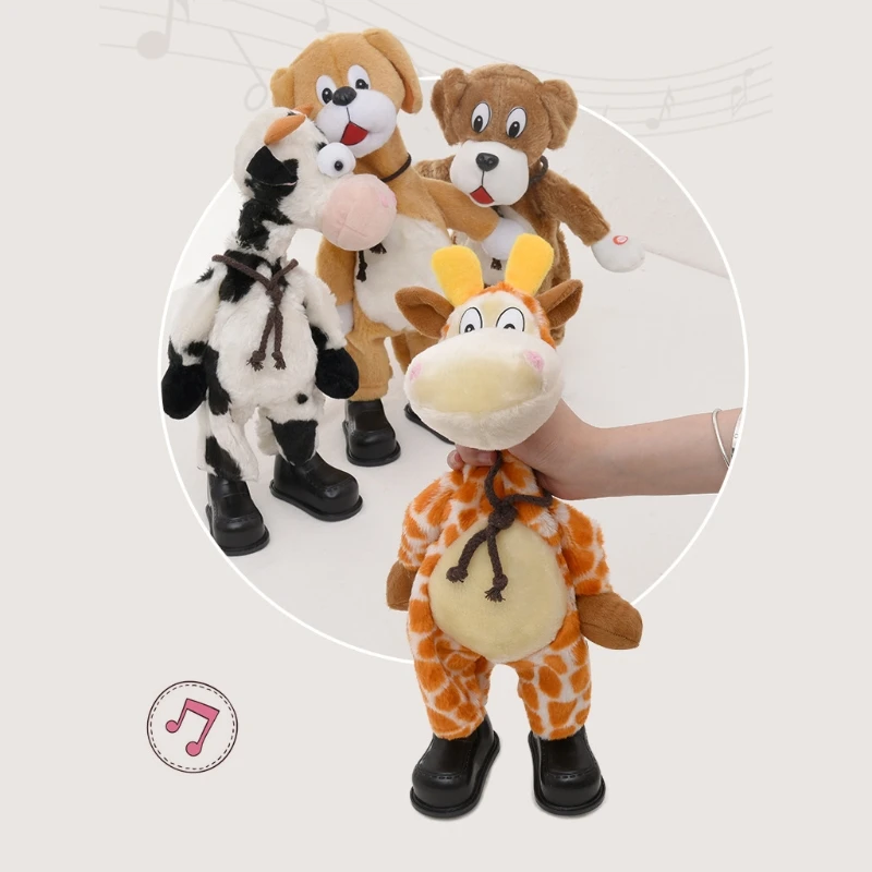 Реалистичный дизайн: мягкий дизайн шитья, чтобы сделать его реалистичным коровой/оленем/собакой и красивой формой для детей, чтобы играть, нажмите кнопку, чтобы активировать функцию танцев, игрушка начинает трясти и крутить тело с музыкой, кавайная плюшевая кукла, чтобы выпустить ежедневное давление.