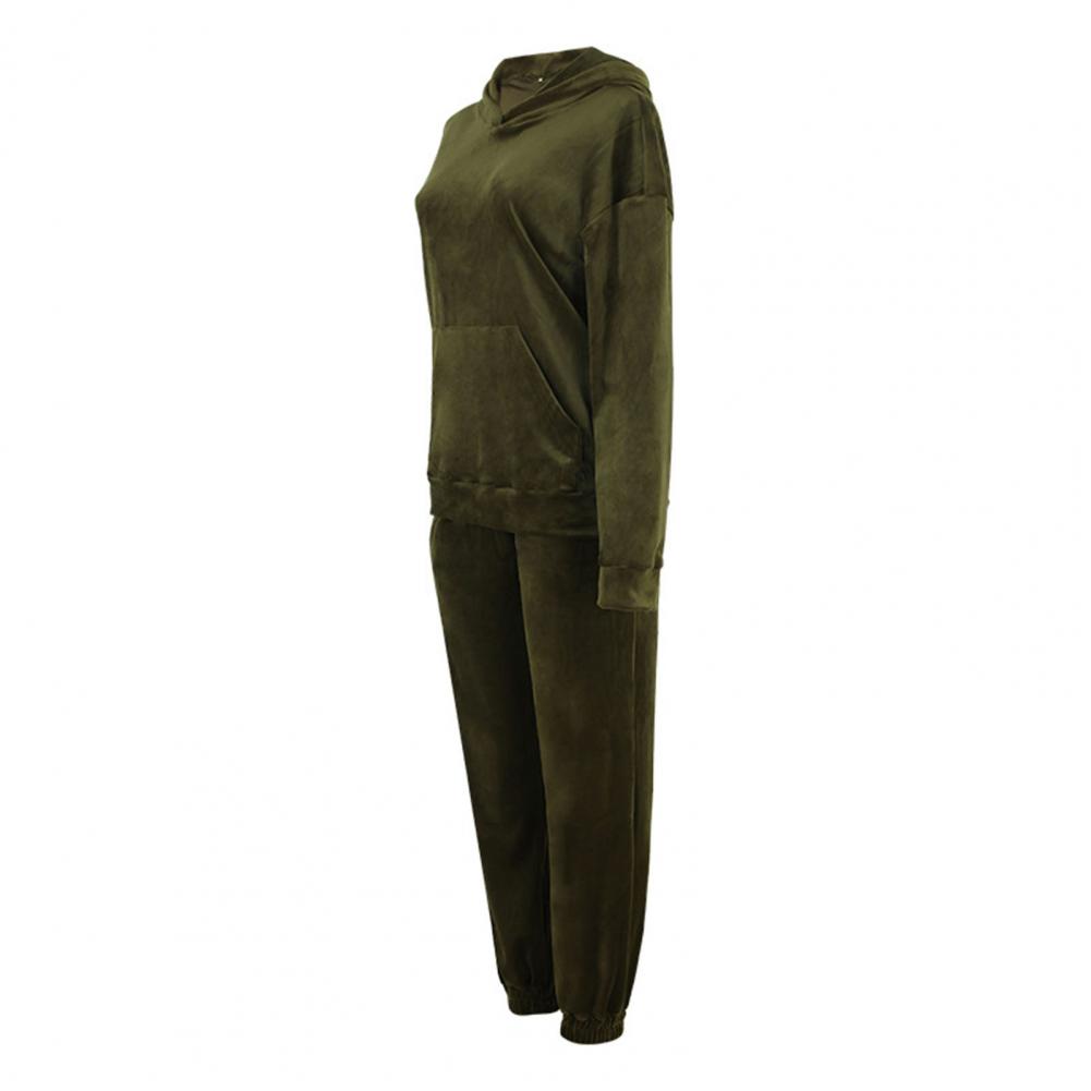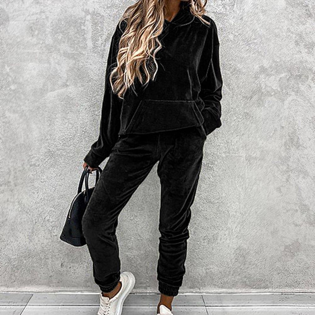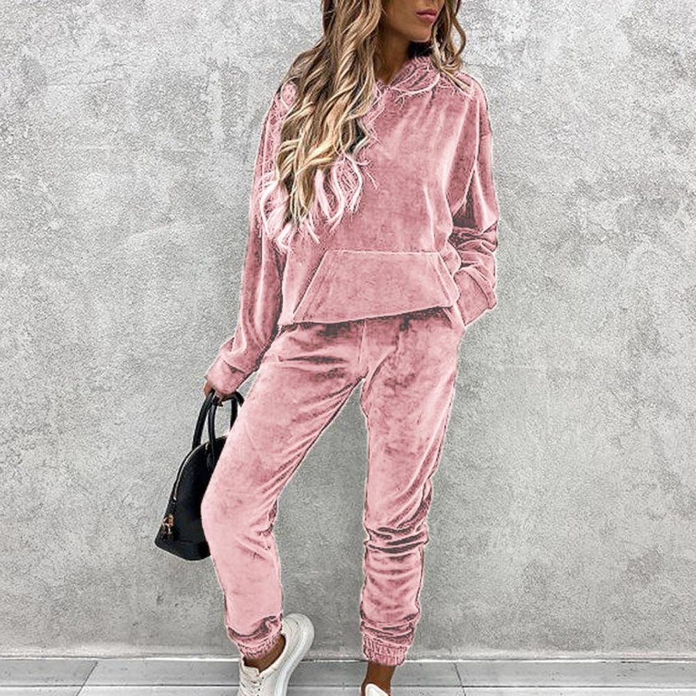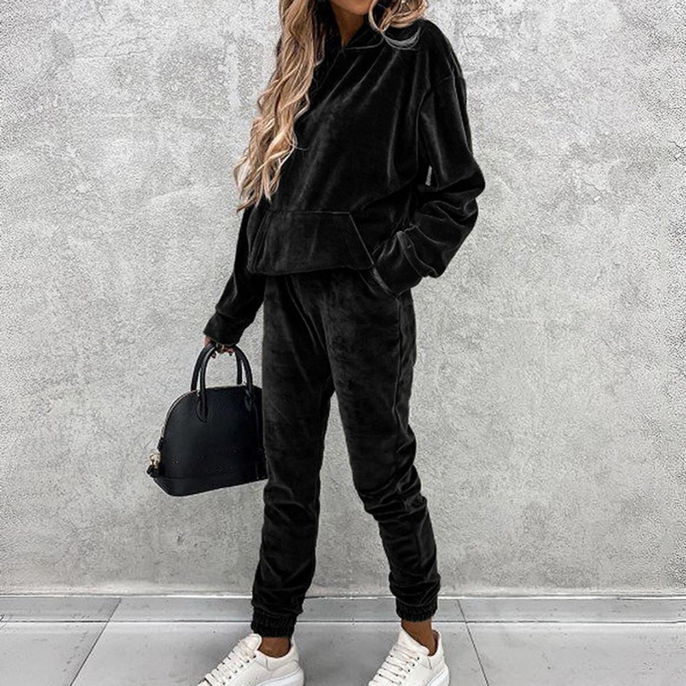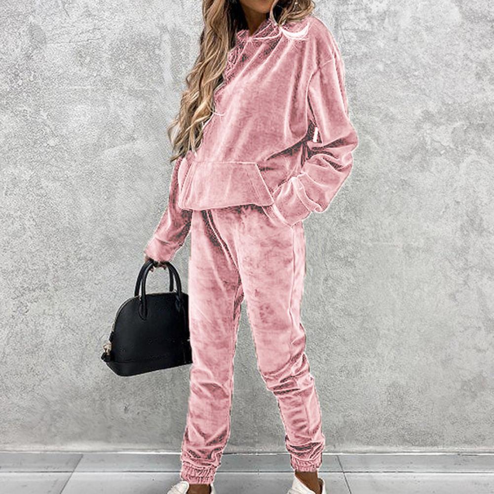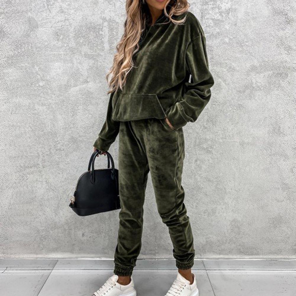Спортивный костюм, однотонная бархатная блузка с карманами, женский спортивный костюм с длинным рукавом и капюшоном, спортивный костюм из двух предметов, комплект одежды для тренировок