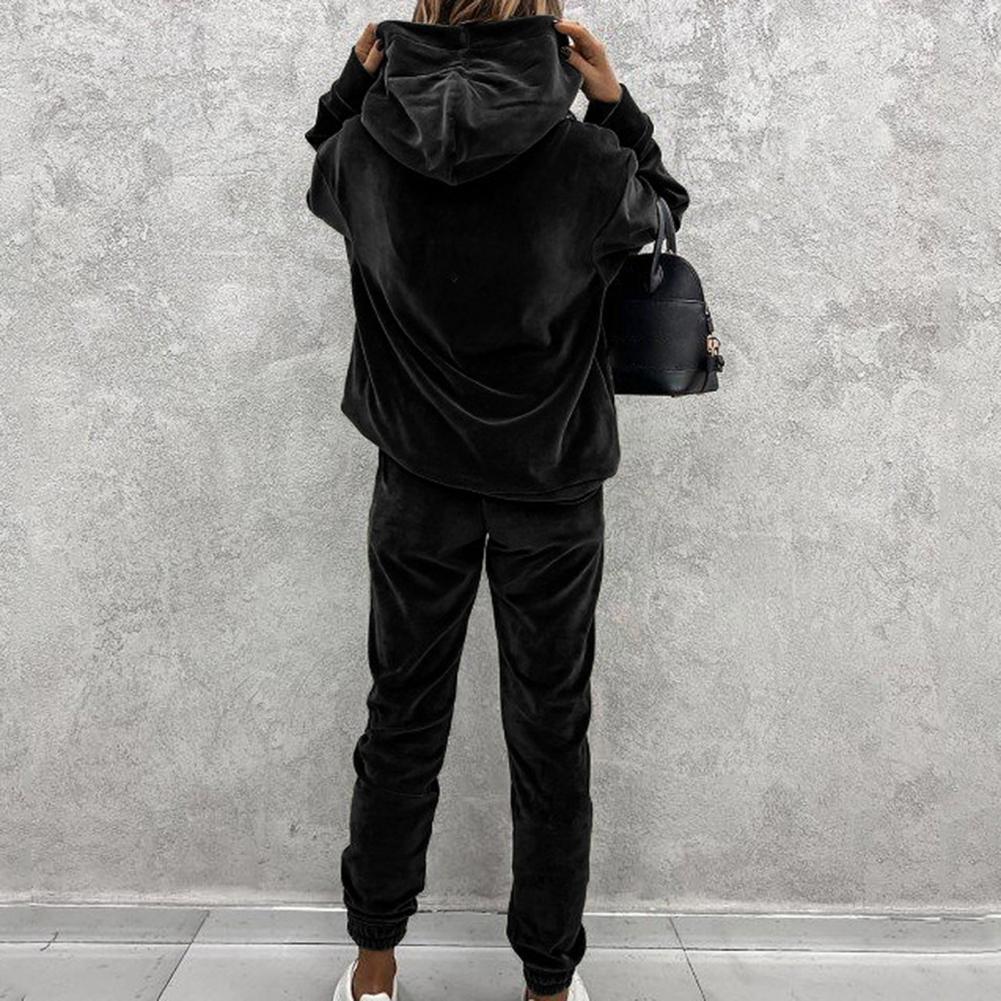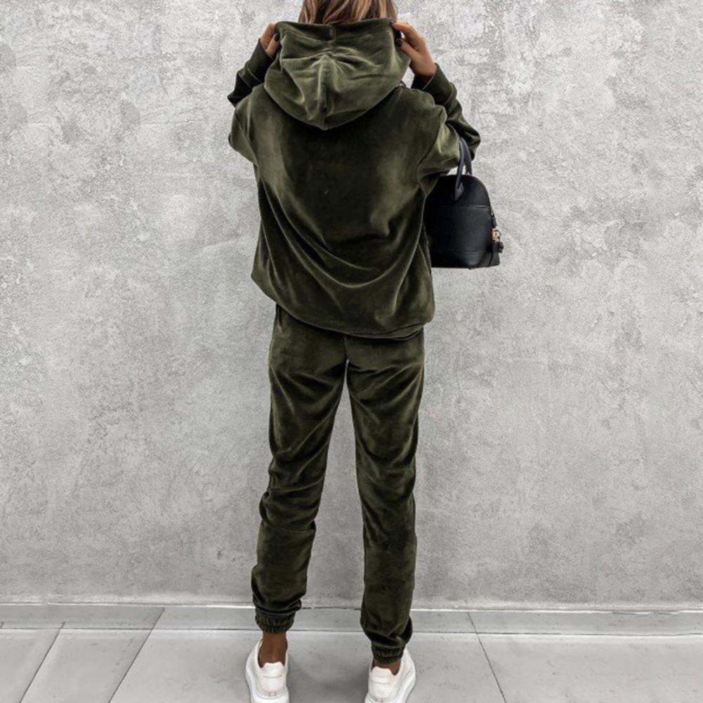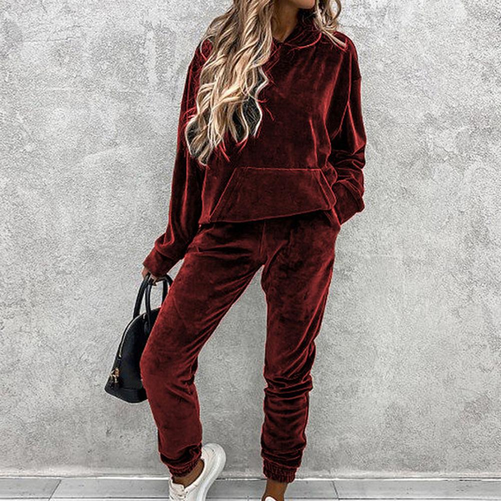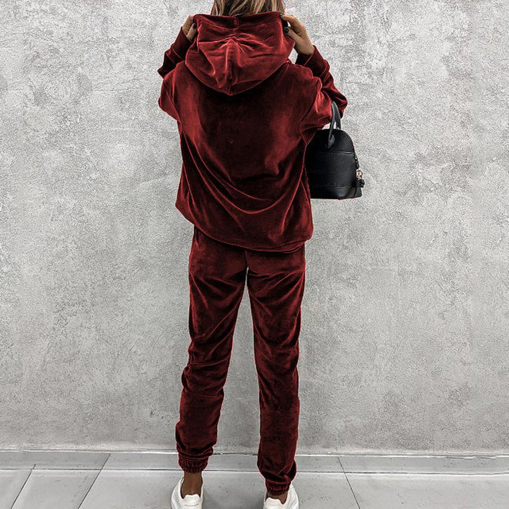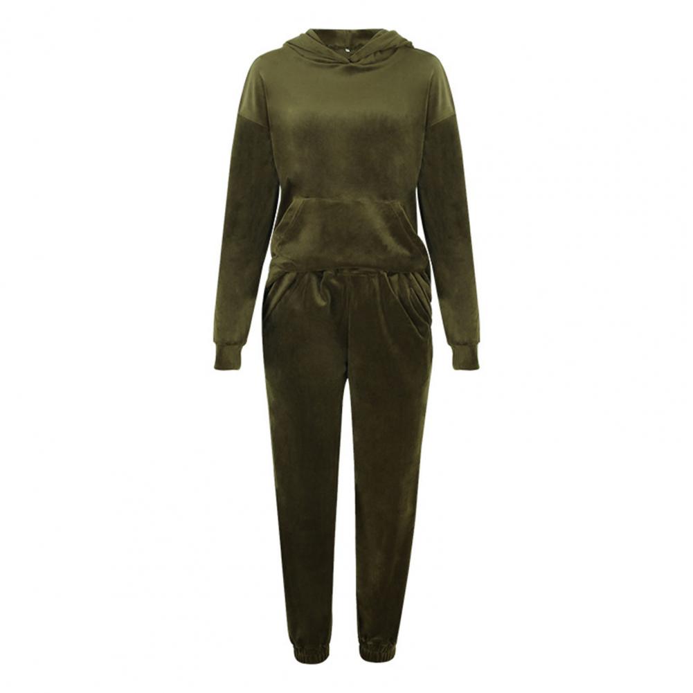 Спортивный костюм, однотонная бархатная блузка с карманами, женский спортивный костюм с длинным рукавом и капюшоном, спортивный костюм из двух предметов, комплект одежды для тренировок
