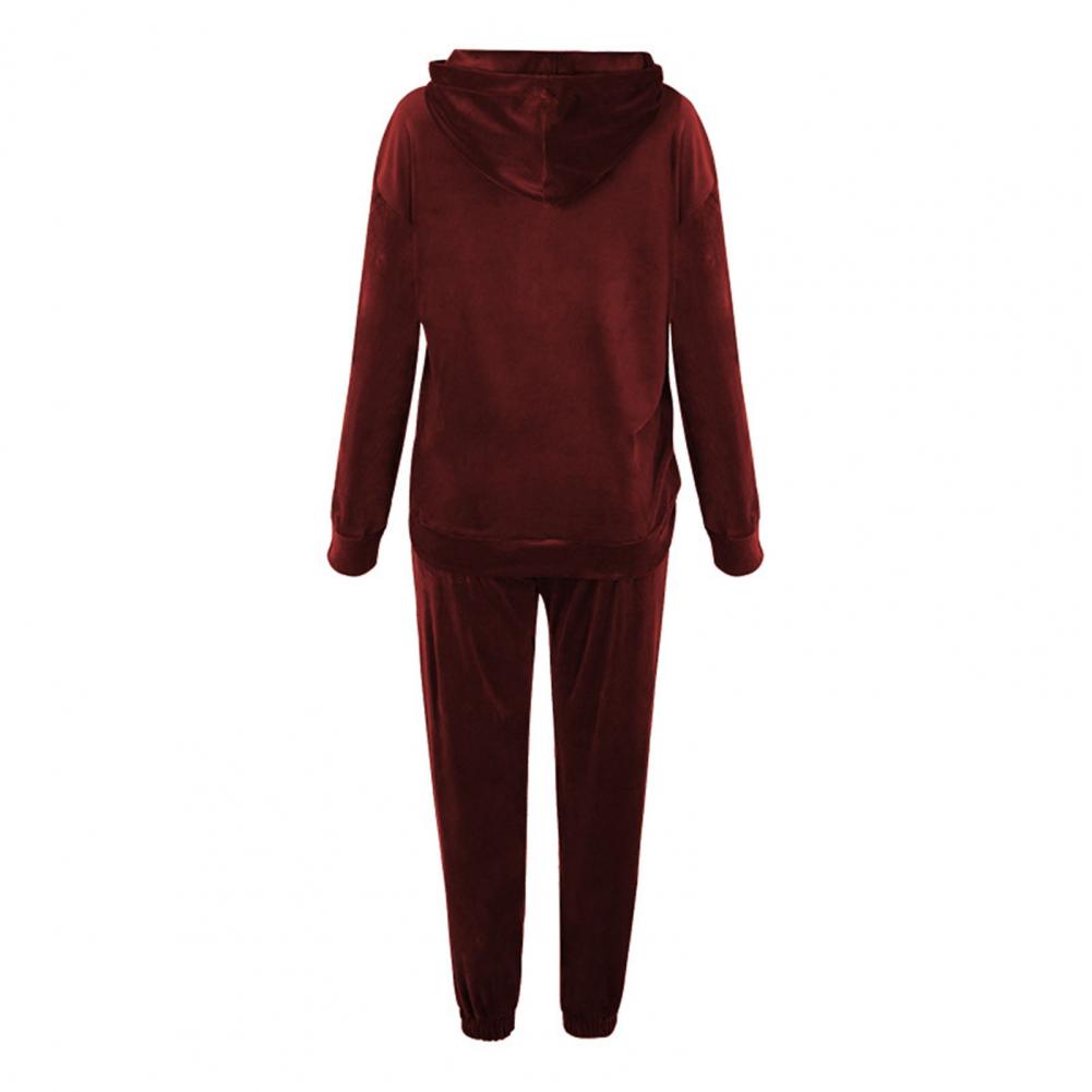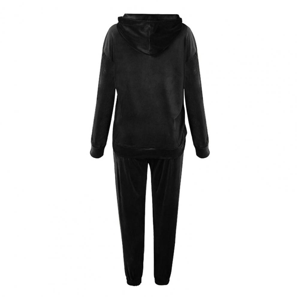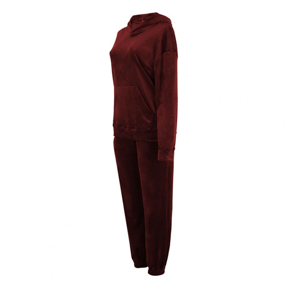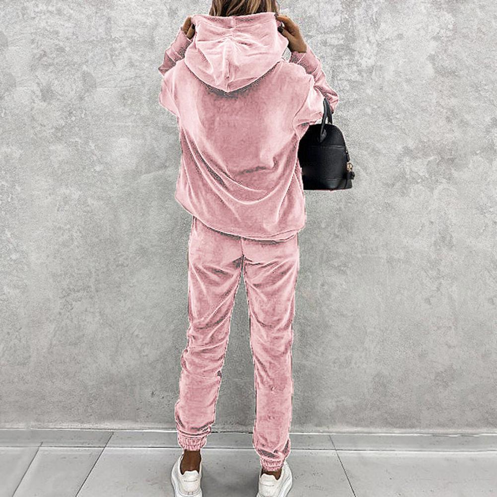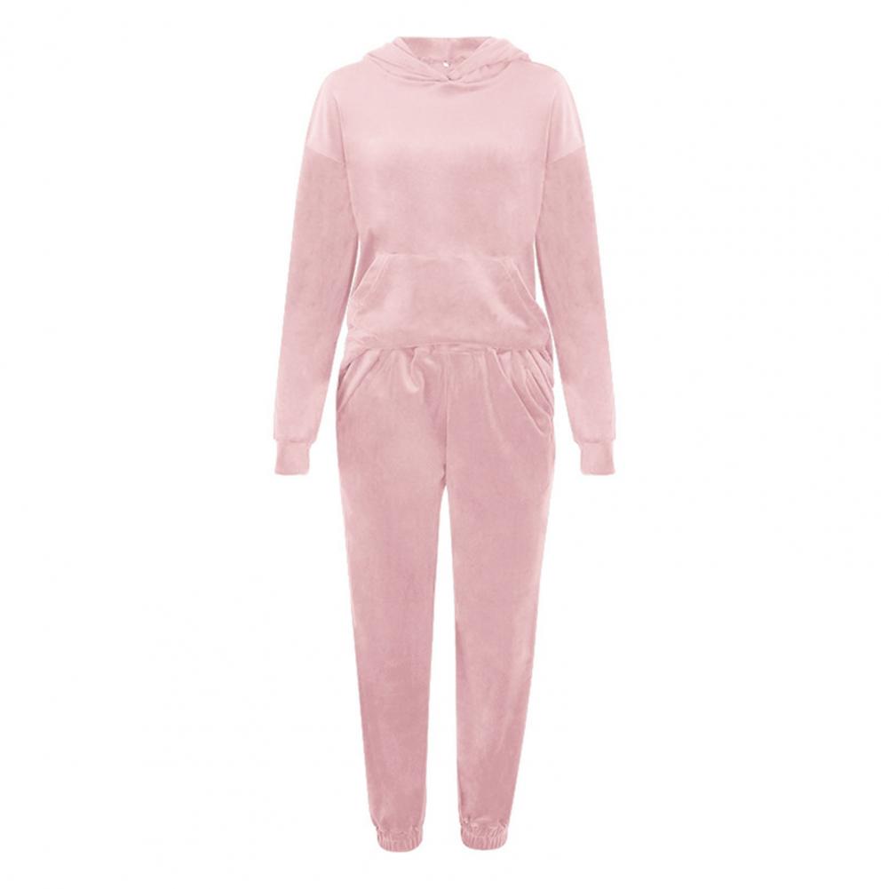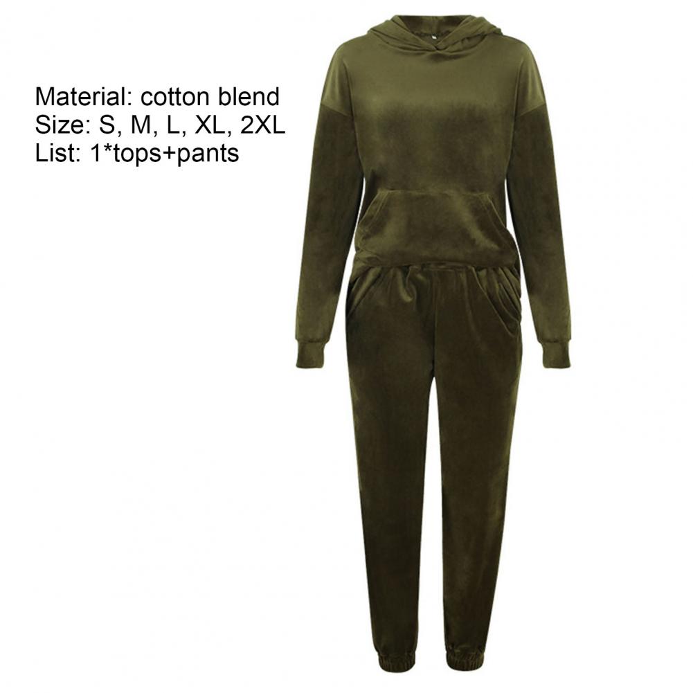 Спортивный костюм, однотонная бархатная блузка с карманами, женский спортивный костюм с длинным рукавом и капюшоном, спортивный костюм из двух предметов, комплект одежды для тренировок