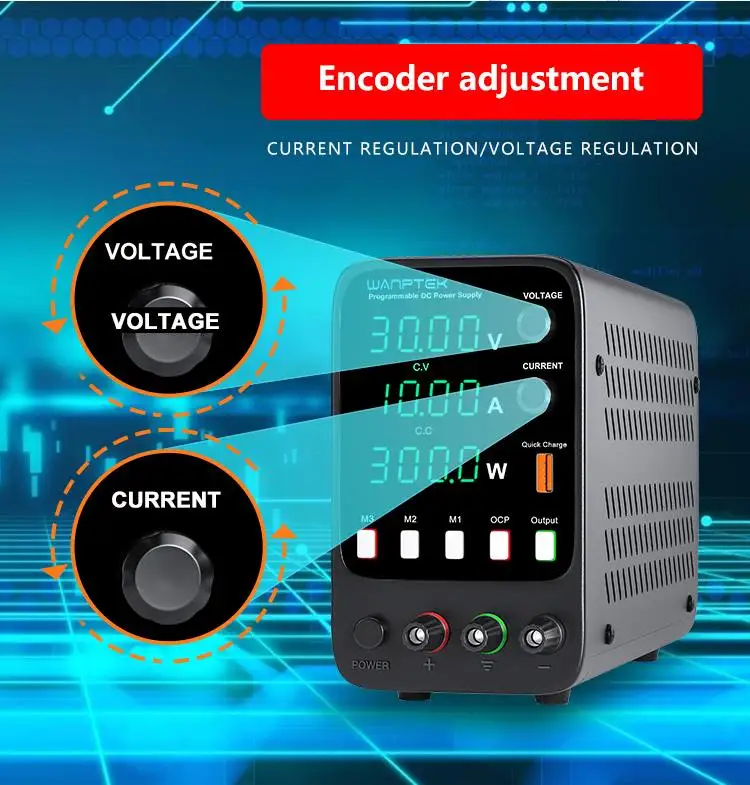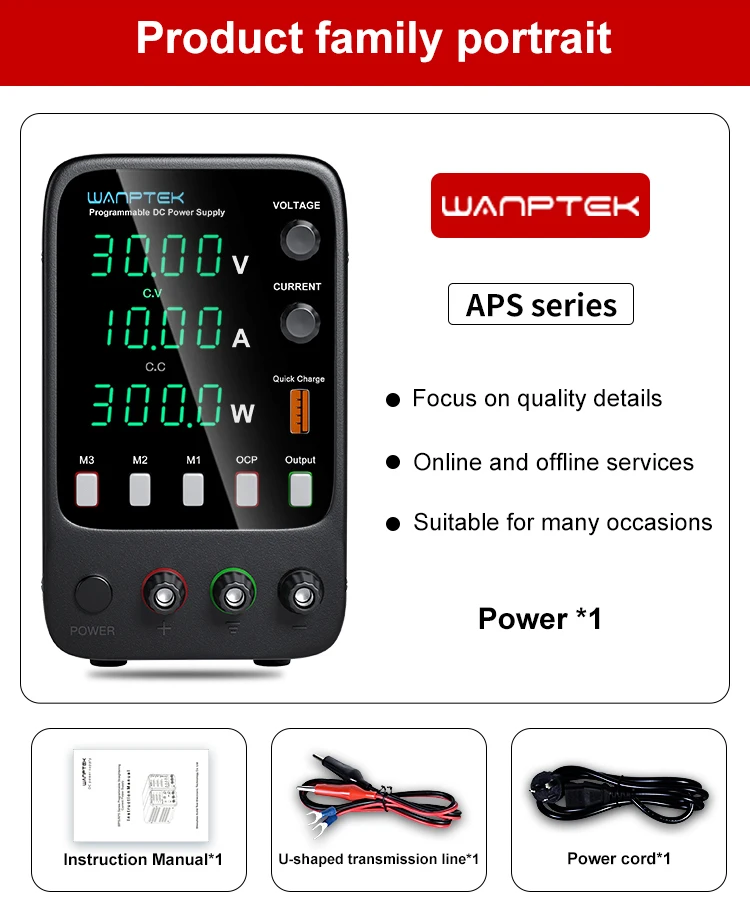 Новая серия продуктов от Wanptek. Эта модель является источником питания постоянного тока с миниатюрными клавишами. Он может управляться и регулироваться резисторами во время выходного напряжения и потока тока, поэтому он может быть проще и точнее в конфигурации напряжения и воды. Панель также обеспечивает высокочувствительные две/три оконные цифровые трубки напряжения экрана, потока и мощности, позволяя пользователям визуализировать текущее состояние использования и различные параметры машины.