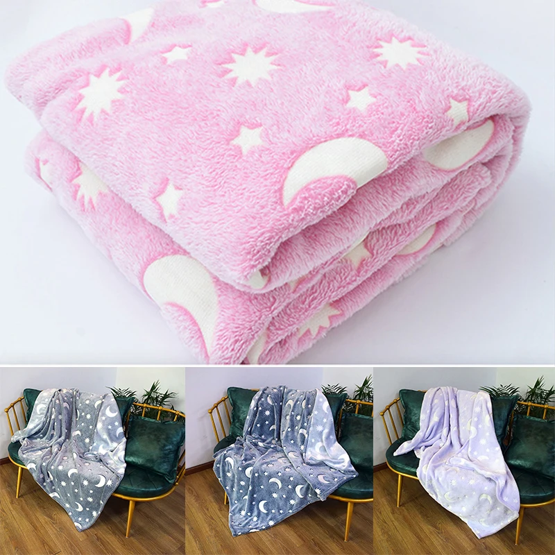 Двустороннее Фланелевое светящееся одеяло, ткань удобная и мягкая, и она будет светиться ночью. Милые принты делают жизнь более веселой. Доступно много цветов.