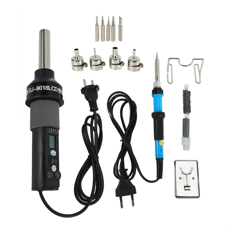 Штепсельная Вилка европейского стандарта, Gj-8018Lcd 220 В 450 Вт градусов регулируемая электронная паяльная станция горячего воздуха + Электрический паяльник