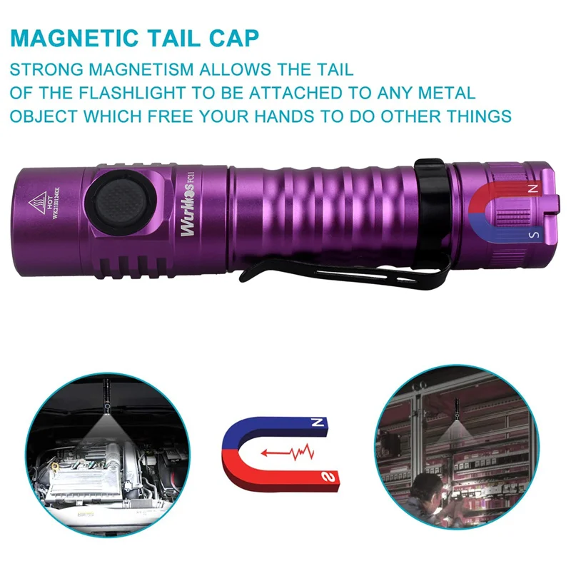 Wurkkos FC11 является мощным, универсальным EDC/наружным фонариком, предназначенным для дома, EDC или активного отдыха, как кемпинг, туризм, рыбалка или охота. Он питается от одного литий-ионного аккумулятора 18650, заряжается через USB-C и поставляется с магнитной задней крышкой для гибкого и удобного использования. Фонарик имеет две группы режимов: Группа 1 с 6 ступенчатыми режимами и группа 2 с режимом ramping.