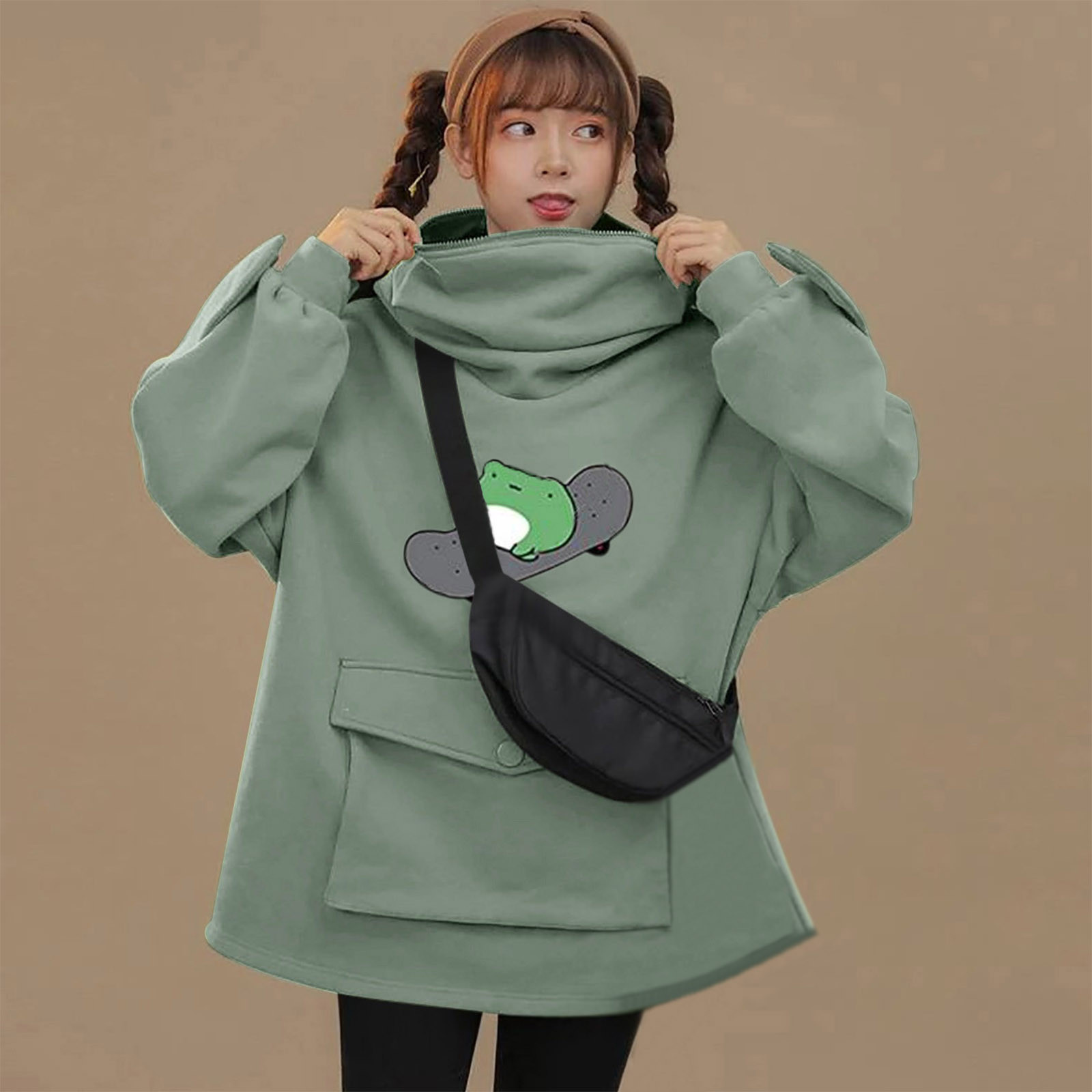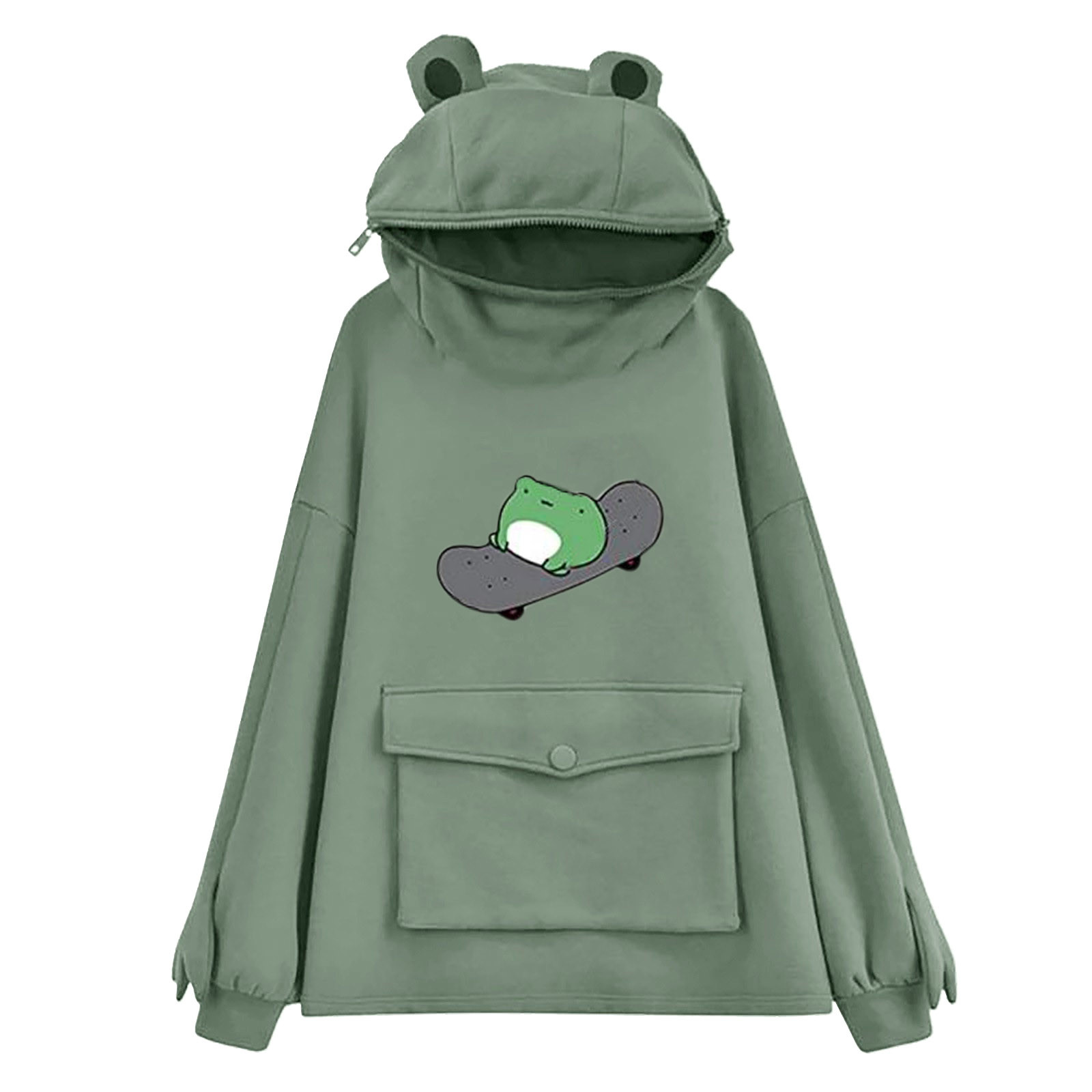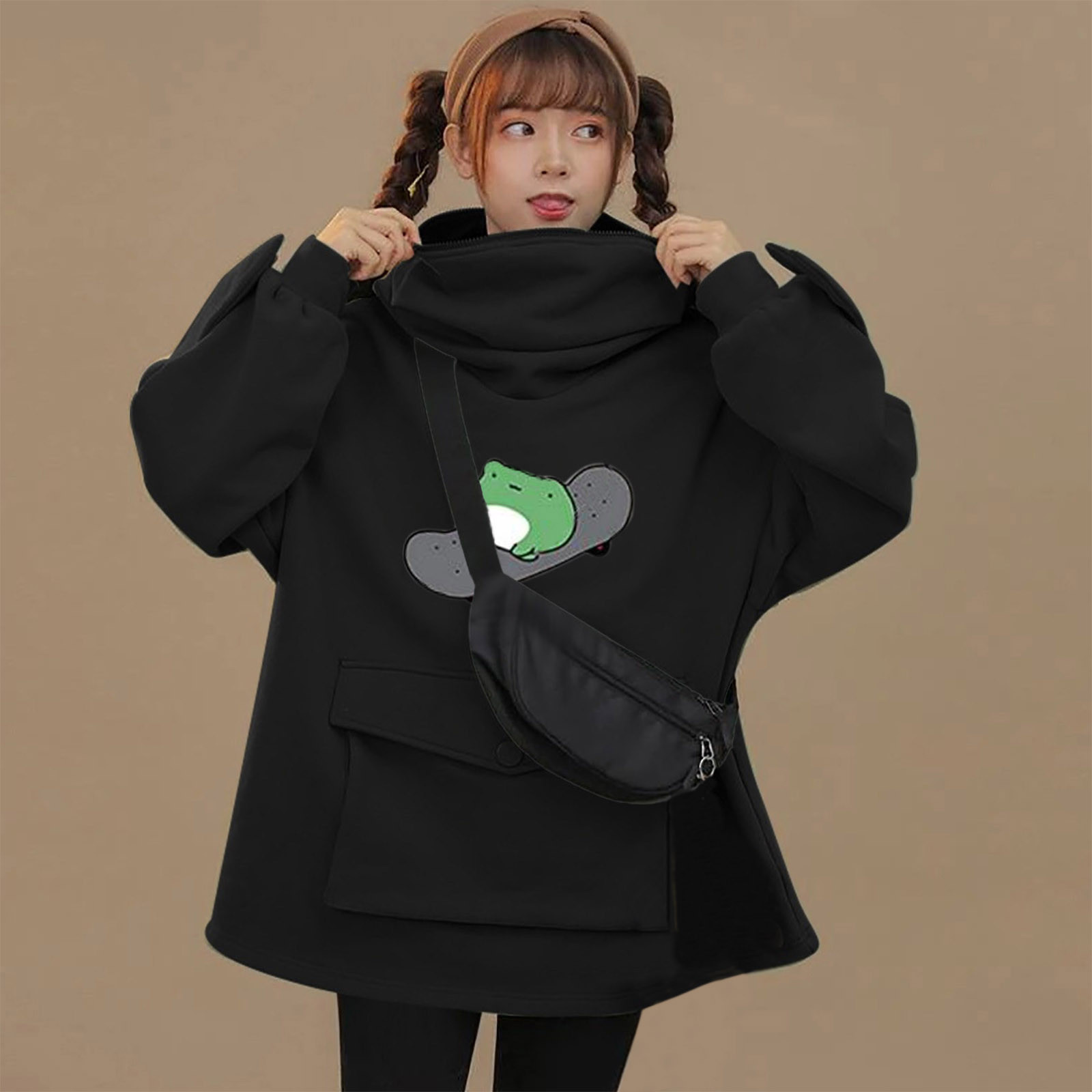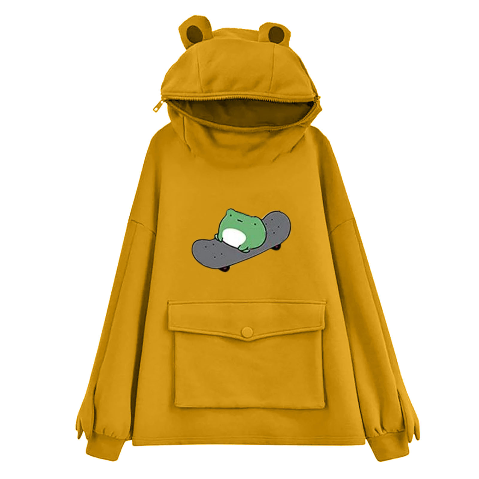 Женские толстовки для девочек; Пуловер на молнии с капюшоном и большим карманом
