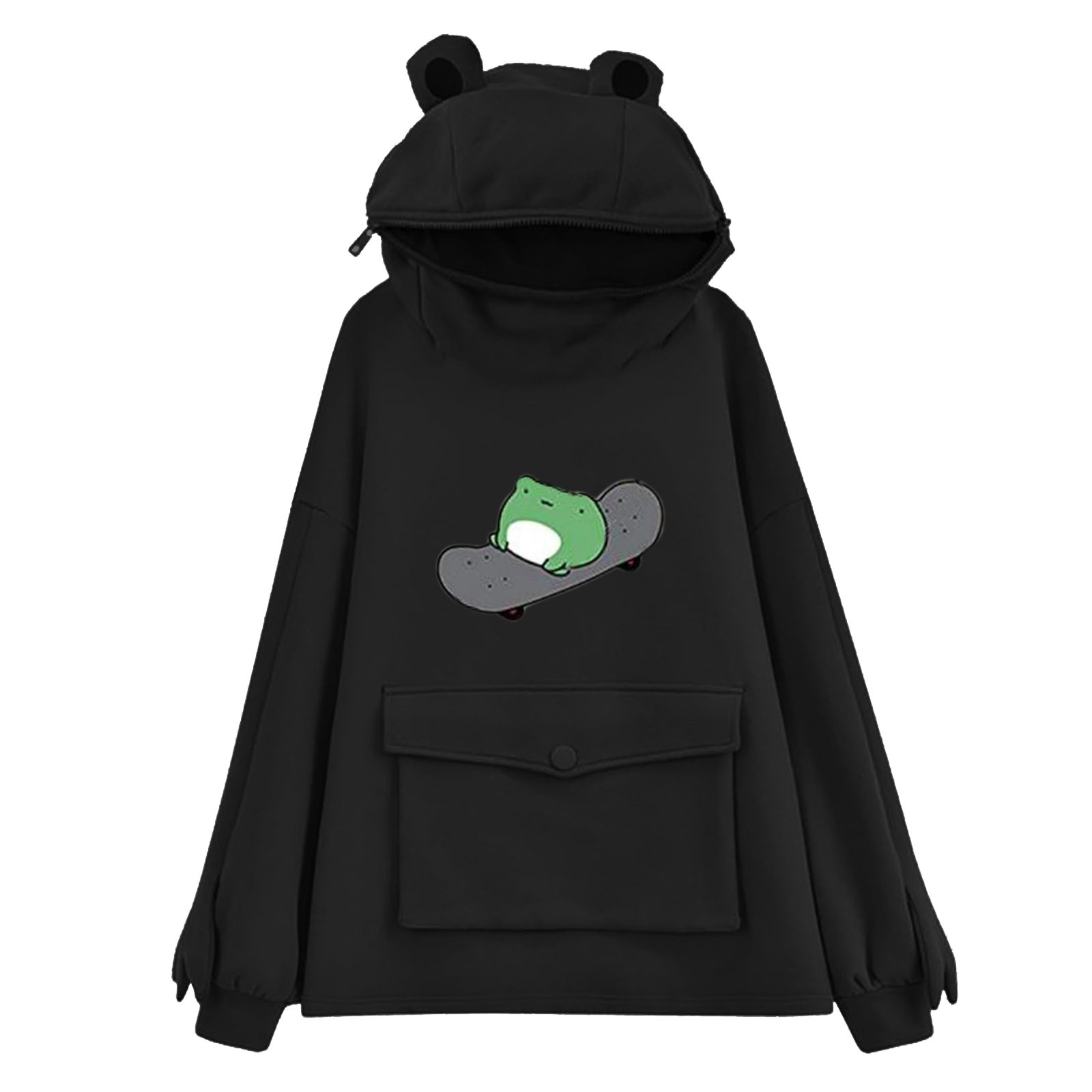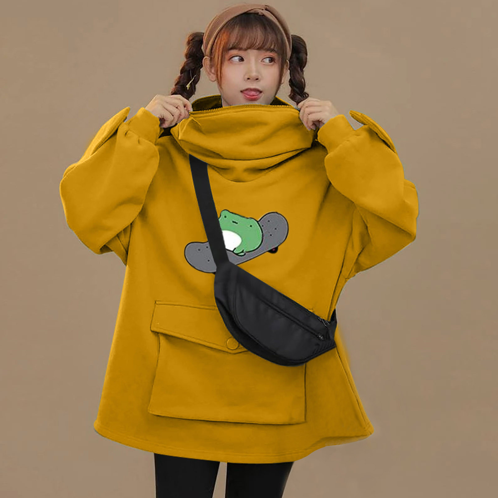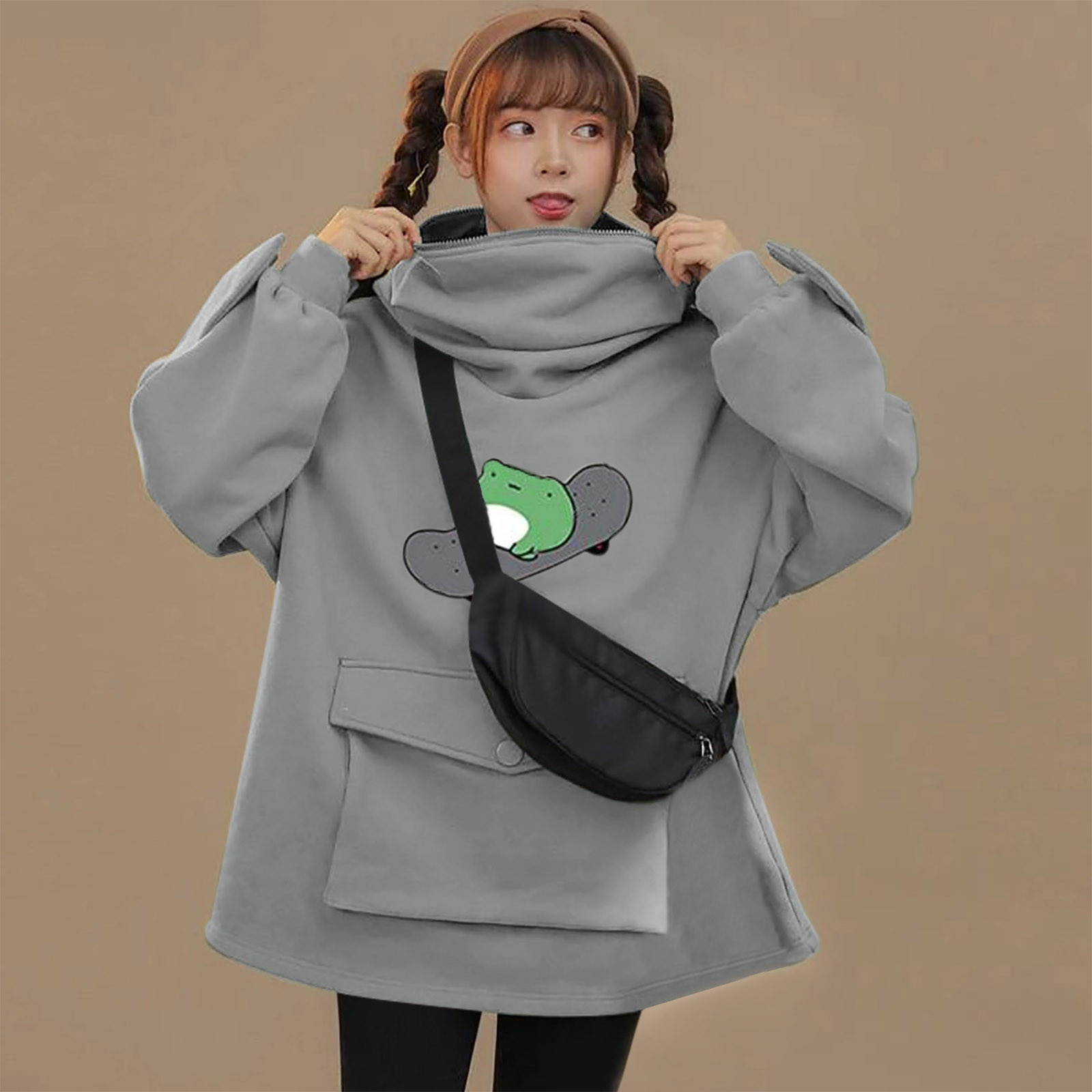 Женские толстовки для девочек; Пуловер на молнии с капюшоном и большим карманом