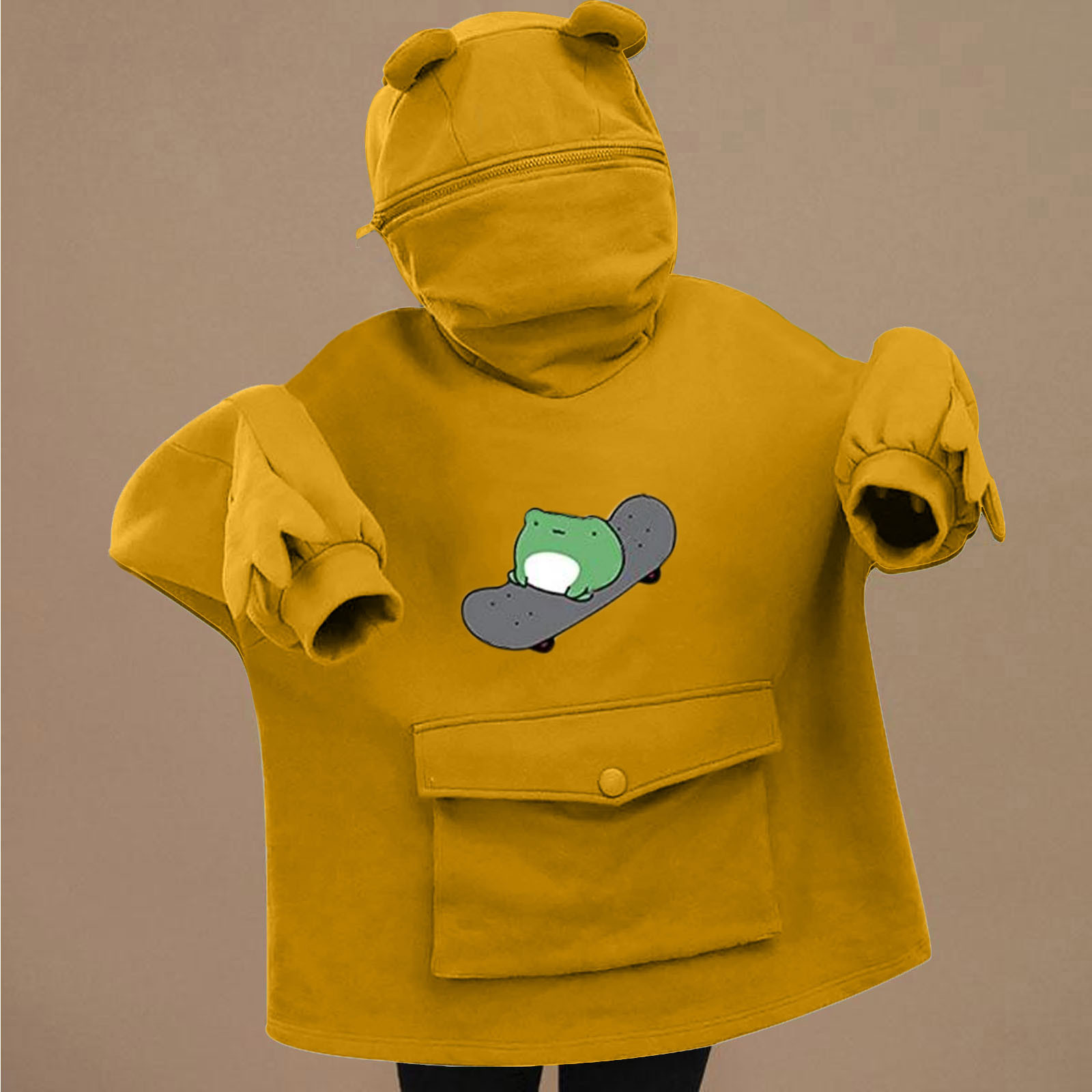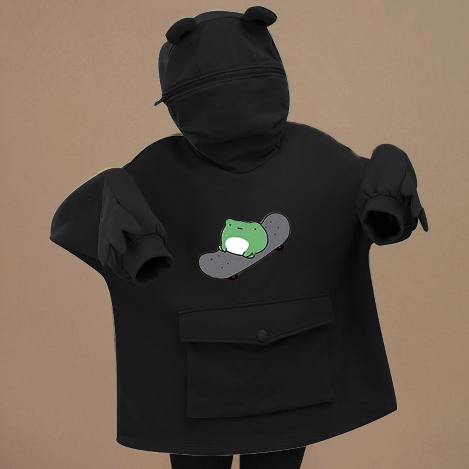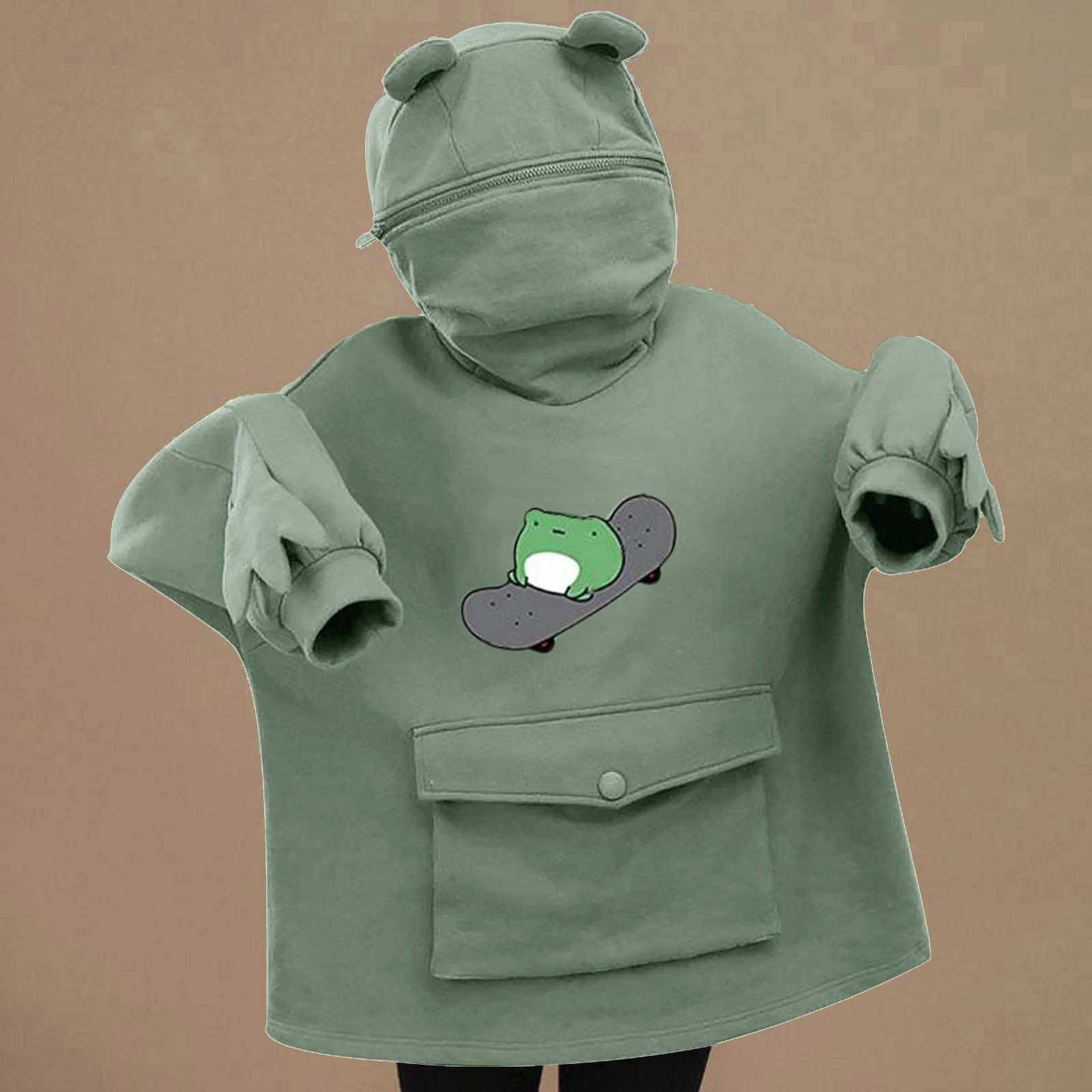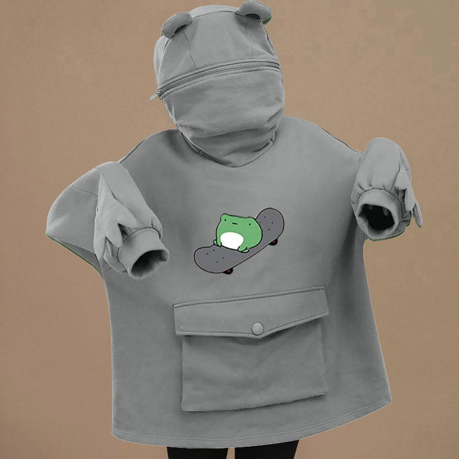 Женские толстовки для девочек; Пуловер на молнии с капюшоном и большим карманом