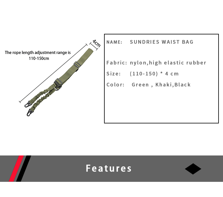 Features: Specially designed 2-point gun sling Anti-corrosion durable metal loop elastic sling Adjustable sling length can be used for rifle slings and backpack slings Good choice for securing to outdoor equipment