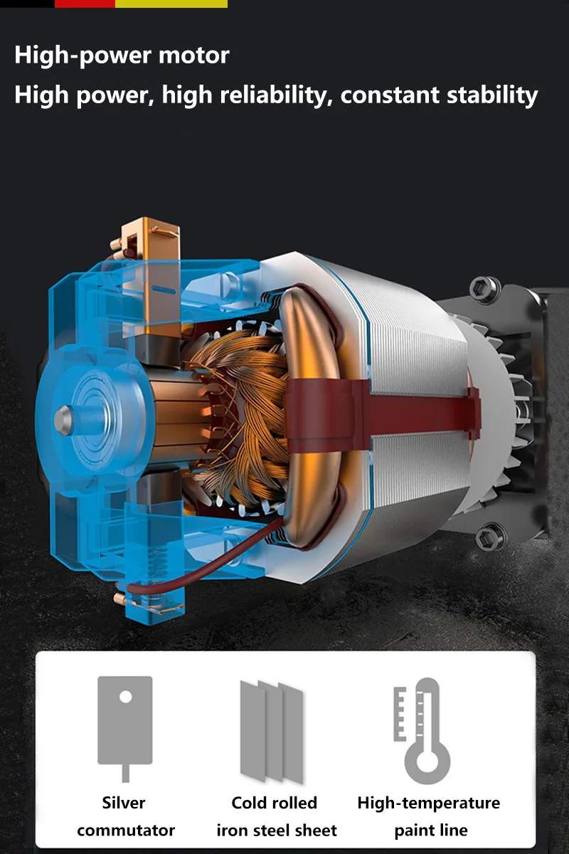 -Мощный двигатель: прочный, низкий уровень шума, подходит для угловых шлифовальных машин, прост в эксплуатации.