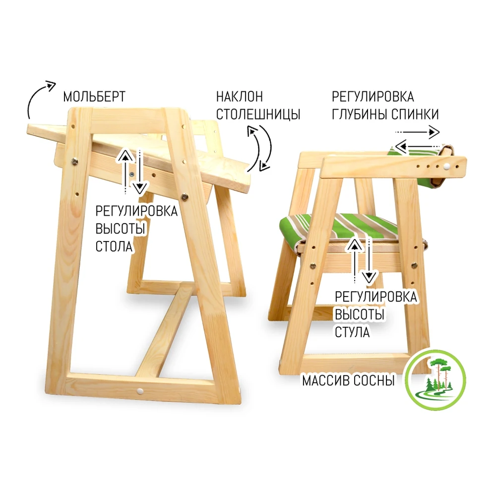 Furniture is made from environmentally friendly raw materials-solid pine, does not contain formaldehyde resins and harmful substances.