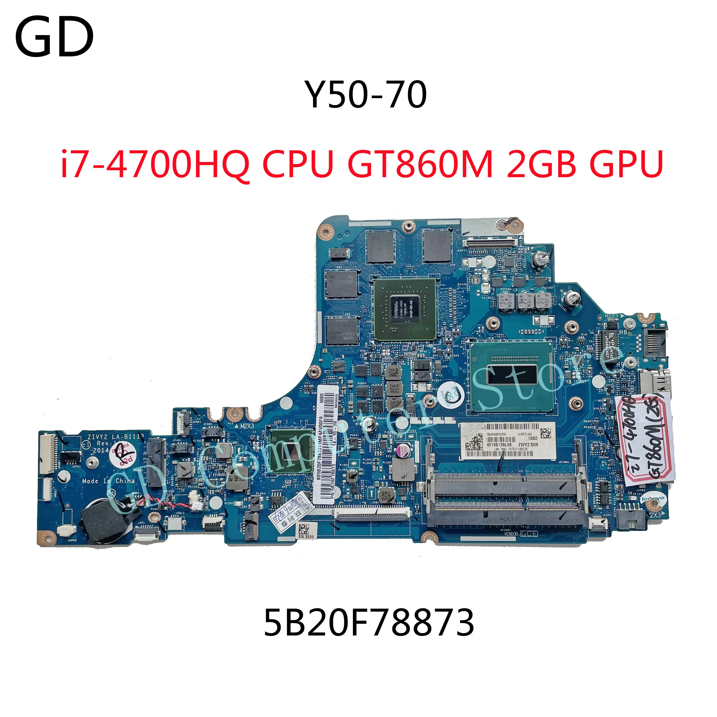 GD Original For Lenovo Y50-70 Laptop Motherboard 5B20F78873 With i7-4700HQ CPU GT860M 2GB GPU ZIVY2 LA-B111P Full Tested1:We promise that all products will be tested before shipment.