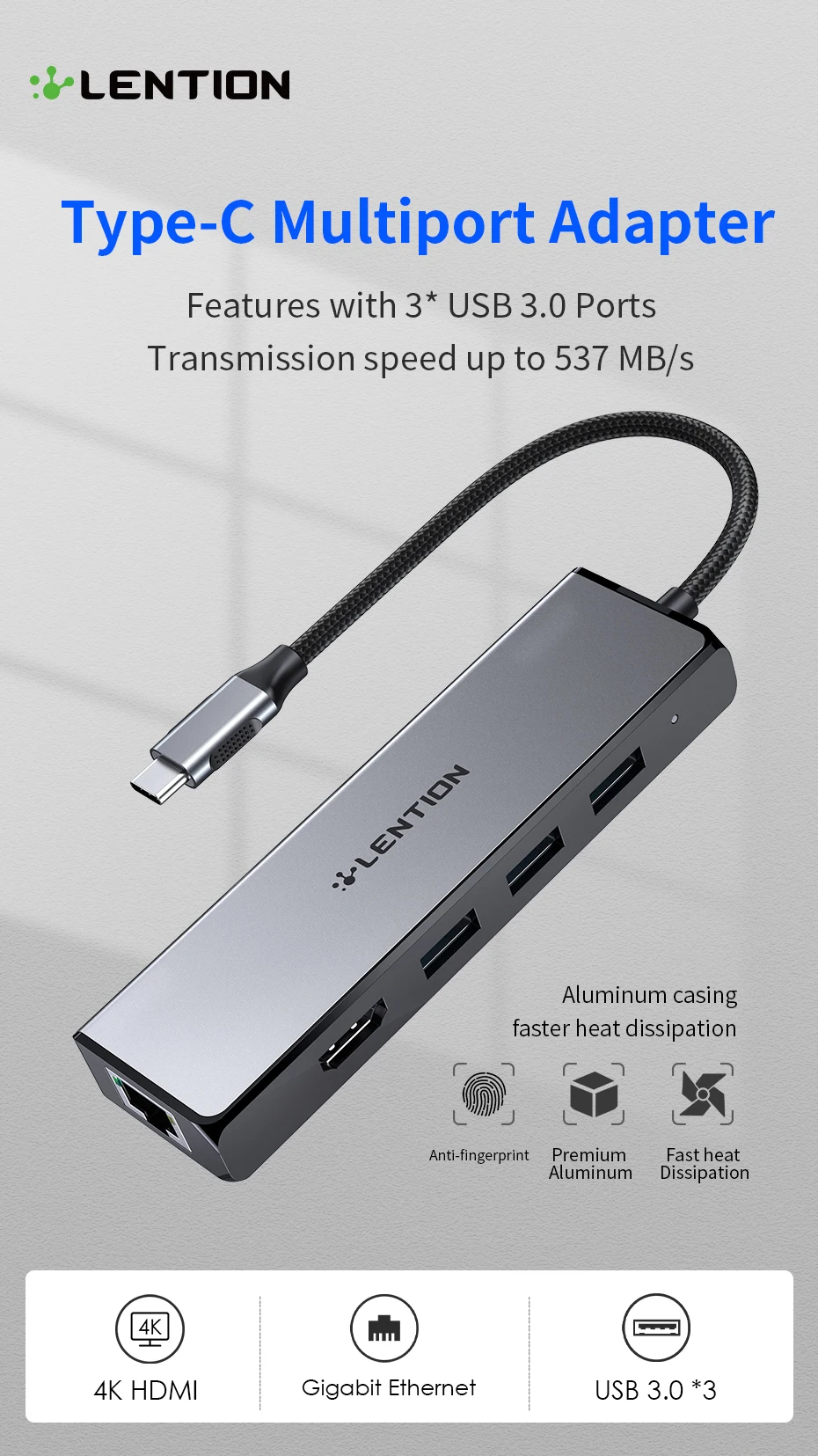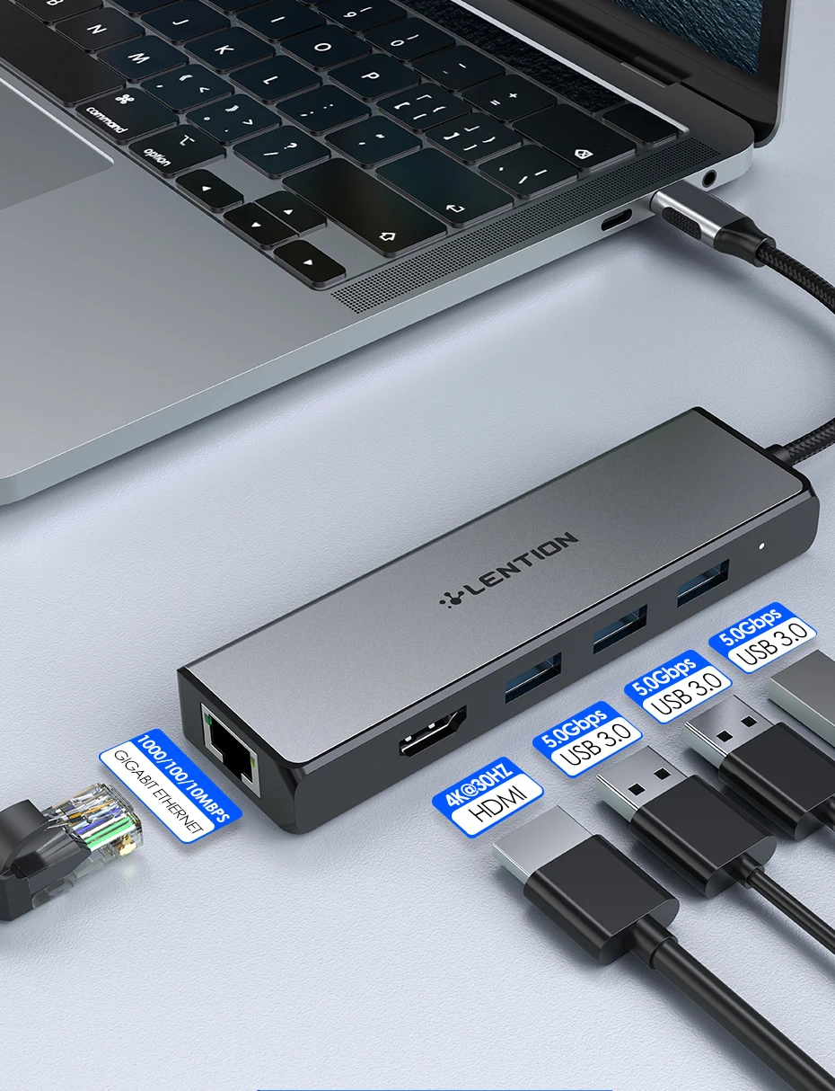 1. Тонкий, но мощный: 5-в-1 концентратор оснащен 4K HDMI Порты и разъёмы, Gigabit Ethernet Порты и разъёмы и 3x USB 3.0 Порты и разъёмы s. Ультра-тонкий корпус скрывает конечные потенциалы, что делает его идеальным ответом для ежедневного использования и переноски с