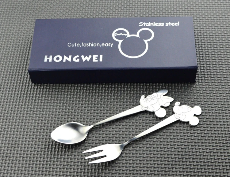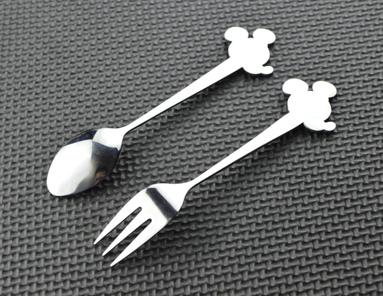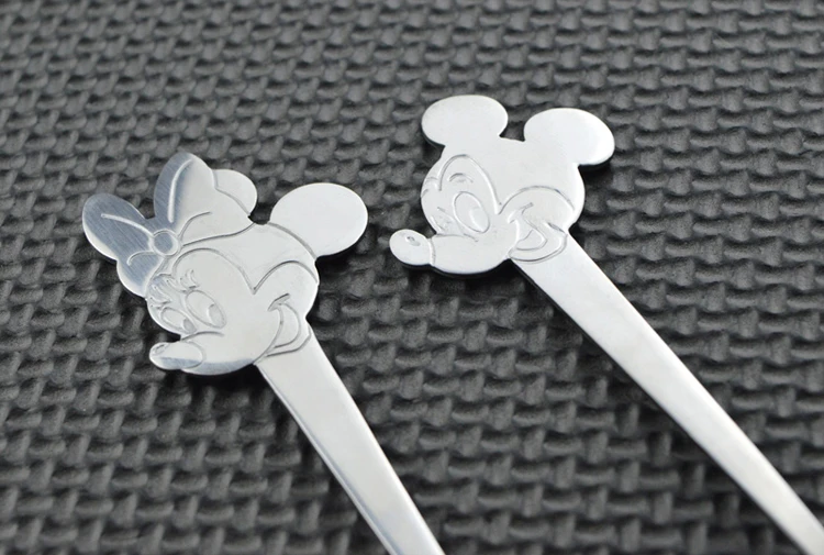 Детская ложка из нержавеющей стали с рисунком Микки и Минни, детская ложка, мороженое, маленький комплект кофейных ложек, посуда, рождественский подарок, без коробки