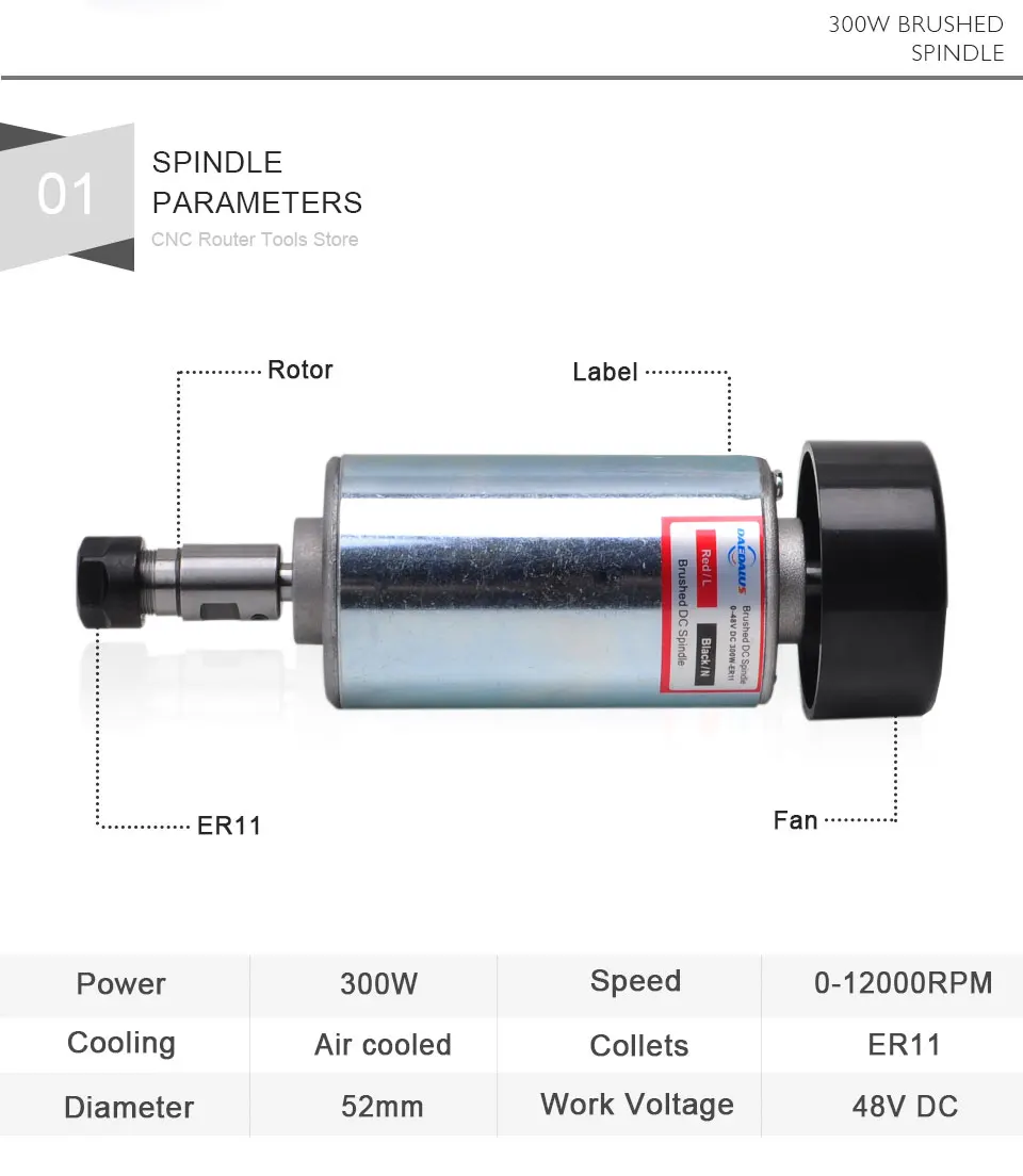 300 Вт щеточный Шпиндельный двигатель ER11 параметр: