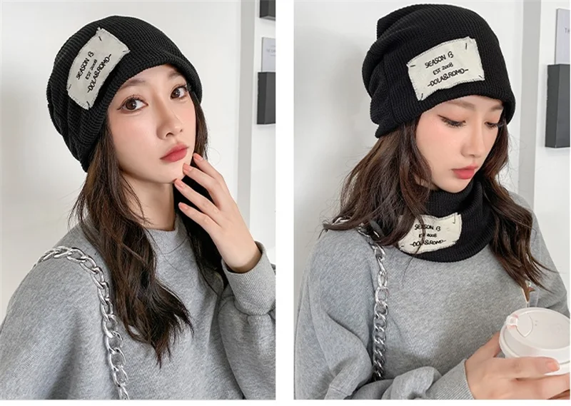 Новинка Осень-зима шапки бини для мужчин и женщин Винтажный дизайн двойного назначения ветрозащитная теплая шапка шарф модный трендовый хип-хоп шапка