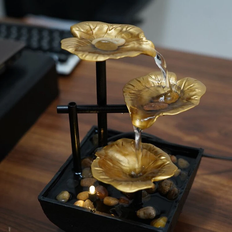 Крытый 3-х уровневая настольный фонтан, автоматический насос с Мощность переключатель, дополнительная глубина бассейна с натуральным Особенности золото
