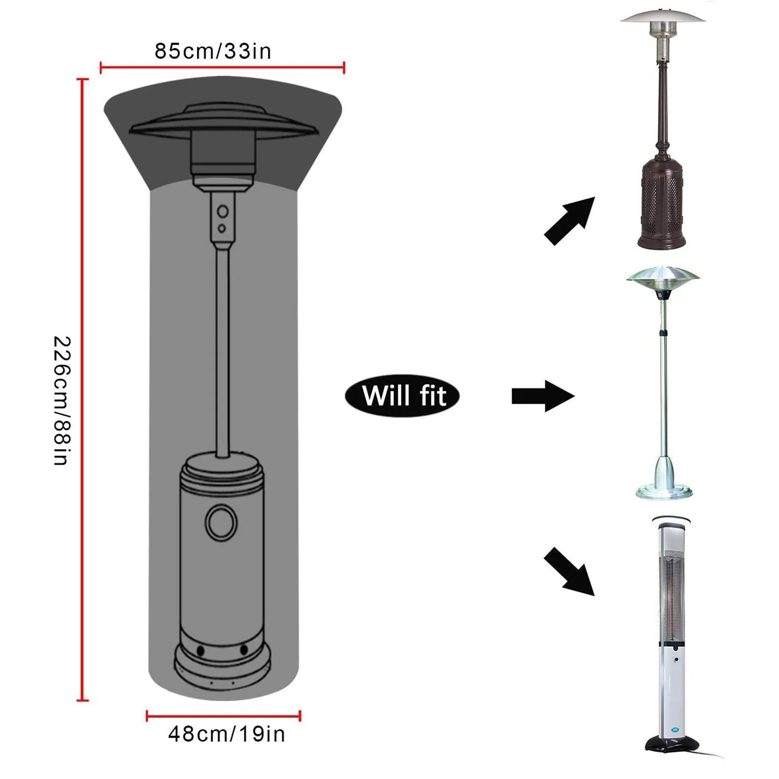 DURABLE AND WEAR-RESISTANT - This outdoor heater cover made of waterproof 210D Oxford material and environmental PVC coated polyester fabric without chemical smell, durable and wear-resistant.