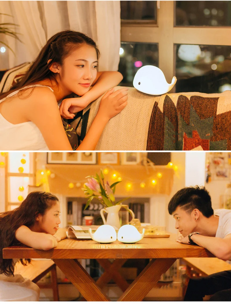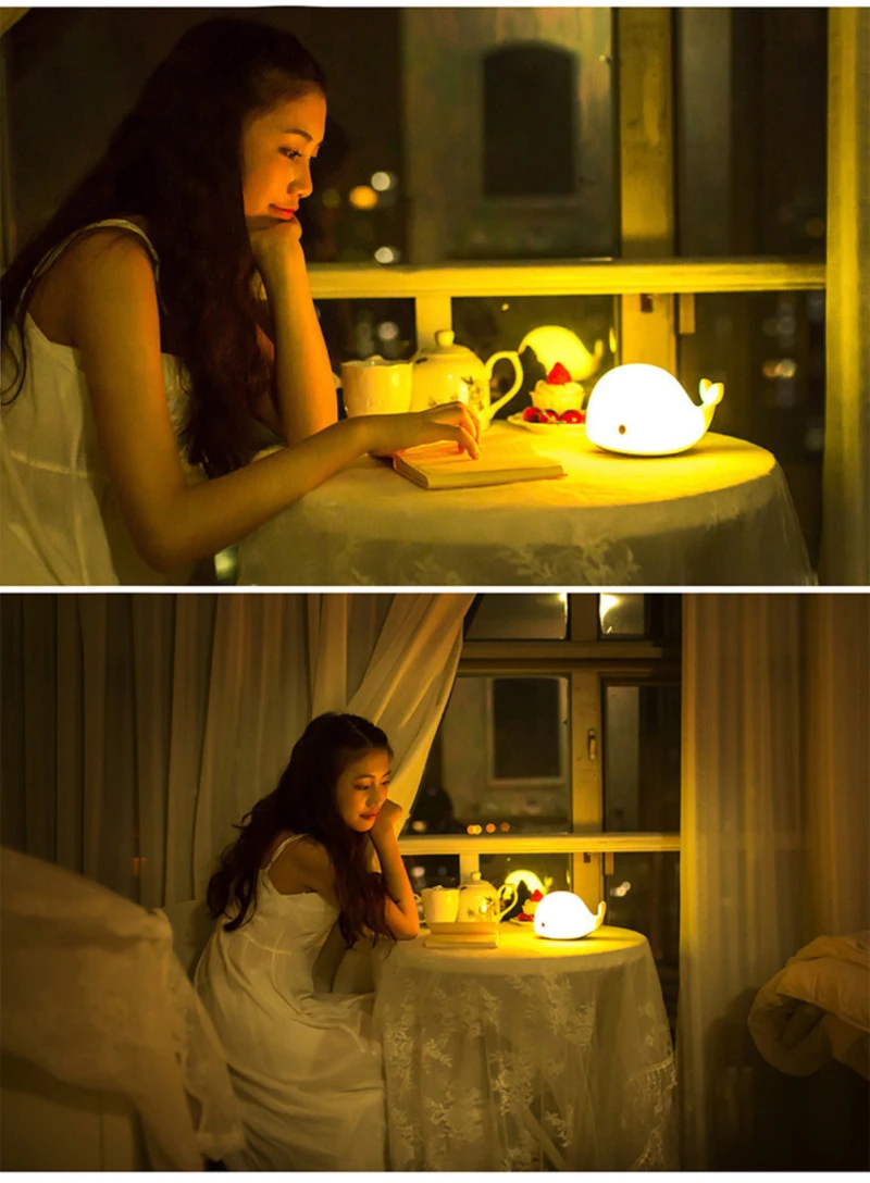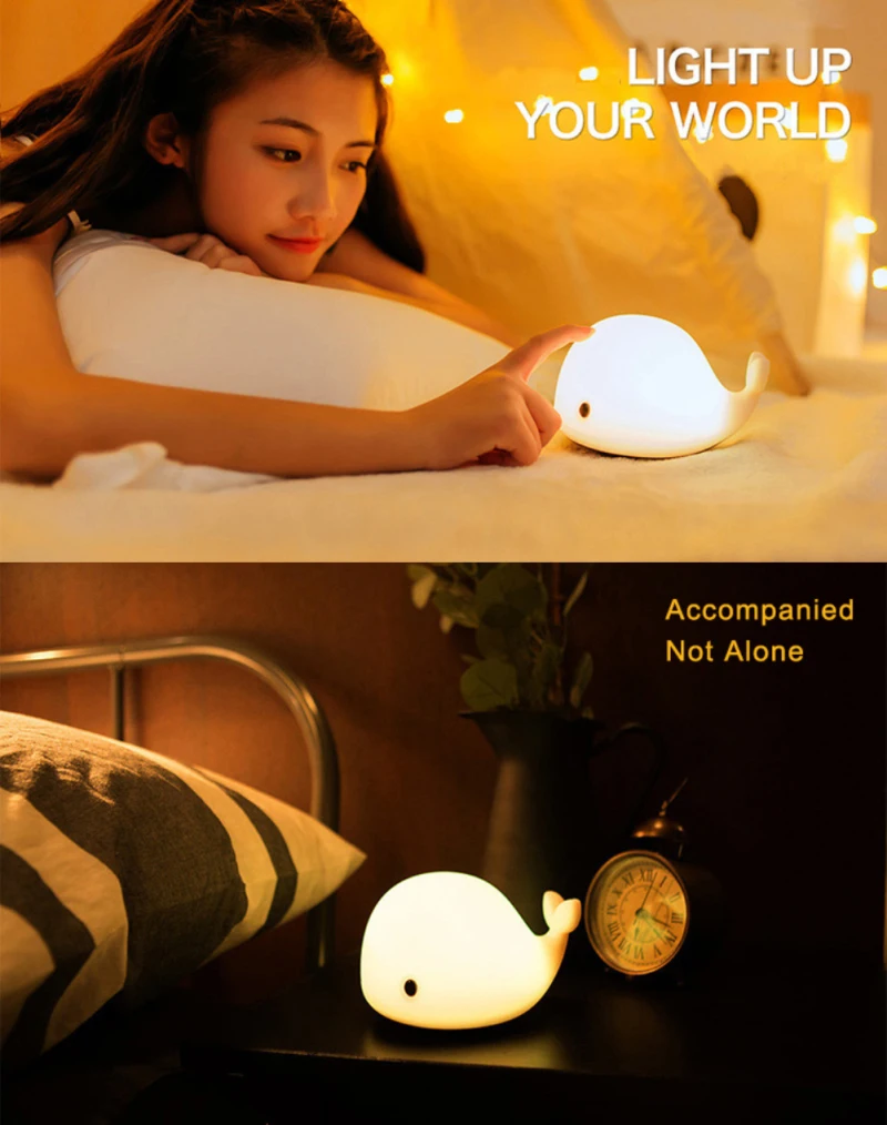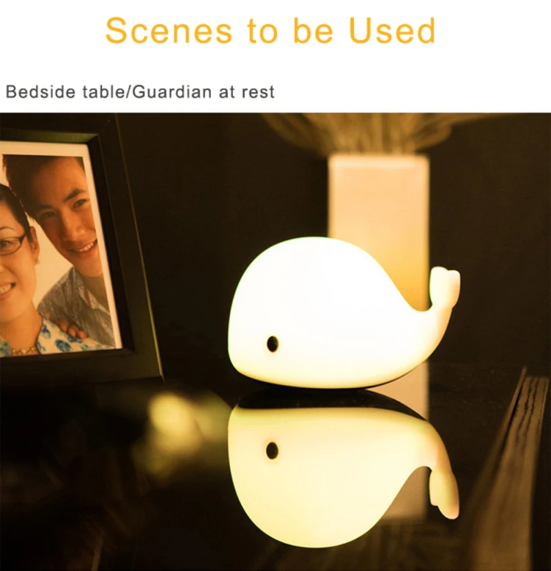 【 7 цветов Изменение ночной Светильник для Kids】There представляет собой светодиодный датчик движения в нижней части ночной Светильник s. Когда вы включите переключатель, он будет отображать теплый белый светильник. Затем коснитесь или нажмите светильник, он переключится между ярко-белым, желтым, красным, синим, зеленым, градиентным. Остановитесь на цвете, который вам нравится, приклеив еще раз дельфинов.