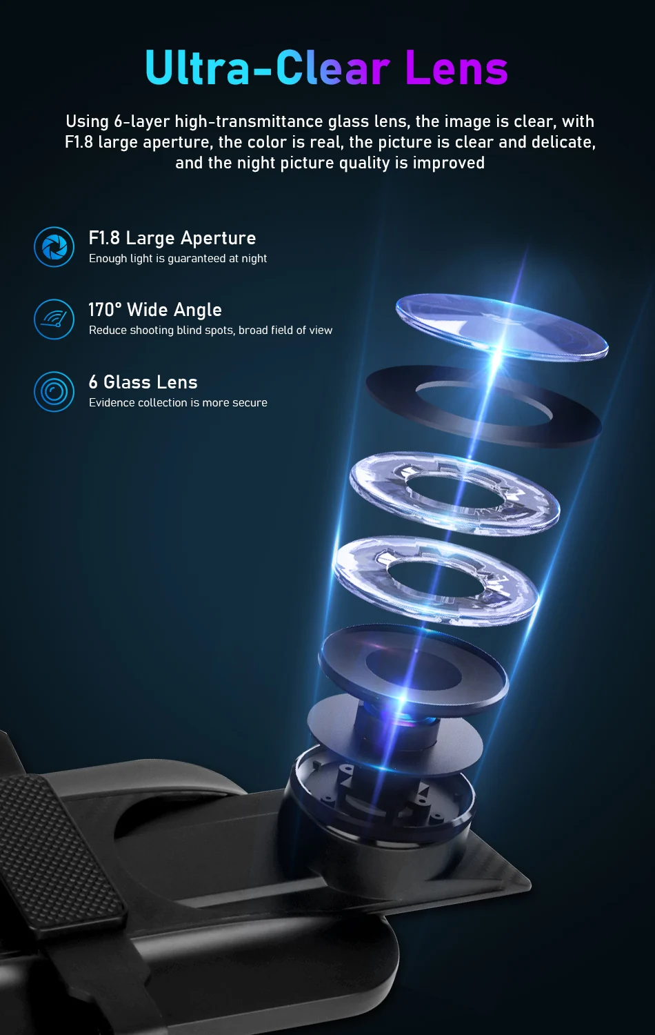 Фронтальная камера: камера заднего вида 2,5 K (Sony IMX 307): 1080P Максимальная Внешняя память:128 гБольший объем запоминающего устройстваИнтеллектуальное Голосовое управление/2,5 K + Ultra FHD запись 1080P пост-запись (супер ночное видение)