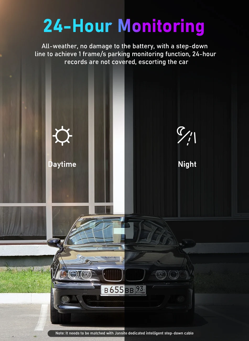 Если видеорегистратор будет шокирован любыми внешними силой, как вор во время парковки, функция режима парковки включится для записи автоматически (Теплое напоминание, его следует использовать с кабелем питания)