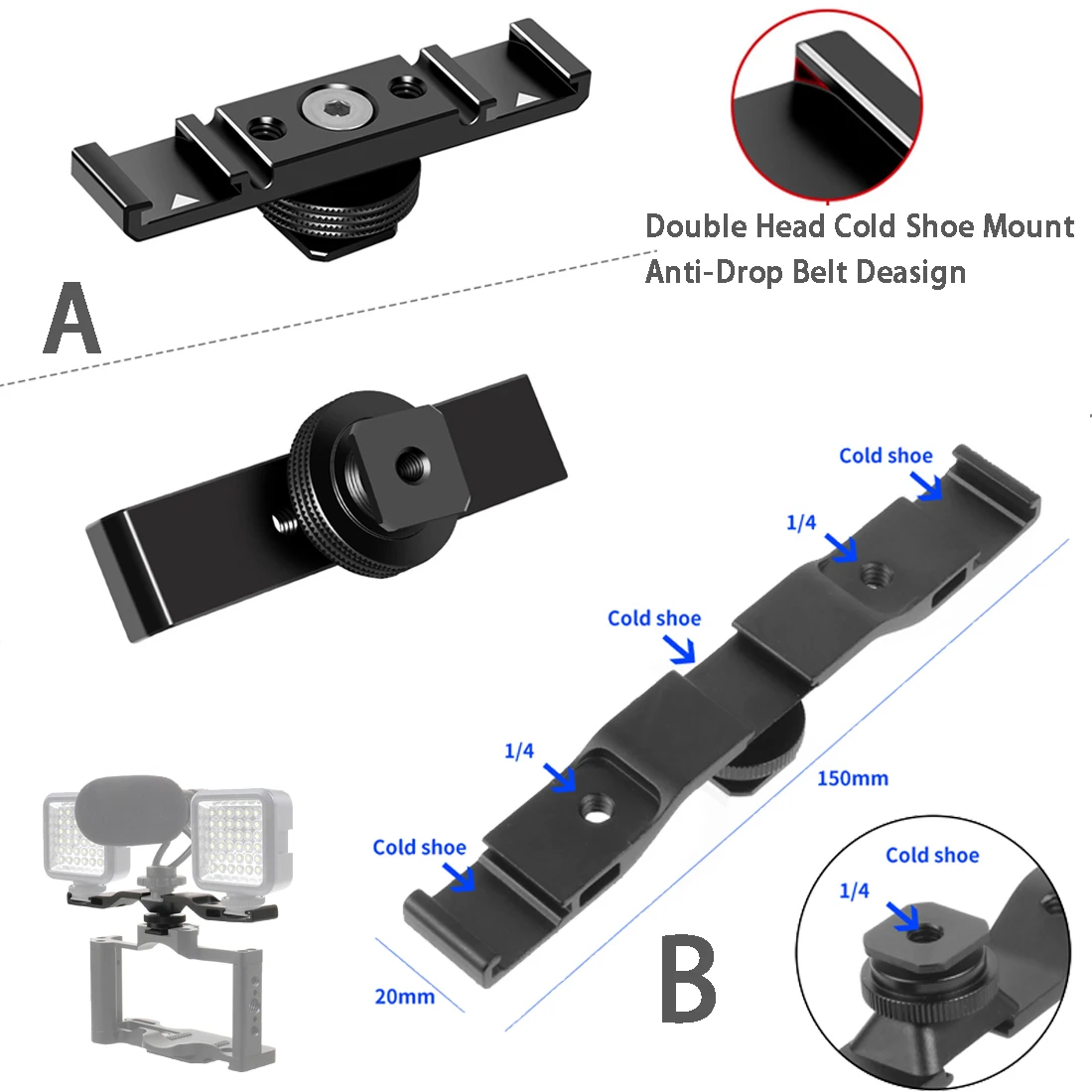 Несколько холодных ботинок для зеркальных камер, заполняющих ламп, микрофонов. Вставьте оригинальную горячую обувь в кронштейн, чтобы расширить количество внешних устройств с широким спектром функций.