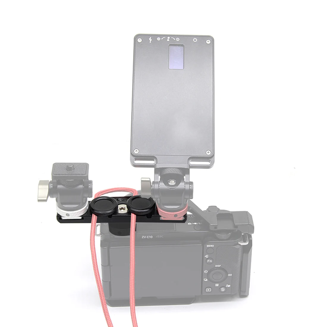 Может быть подключен к различным стандартным устройствам горячего башмака, таким как вспышка, микрофон, заполняющий светильник и т. д.