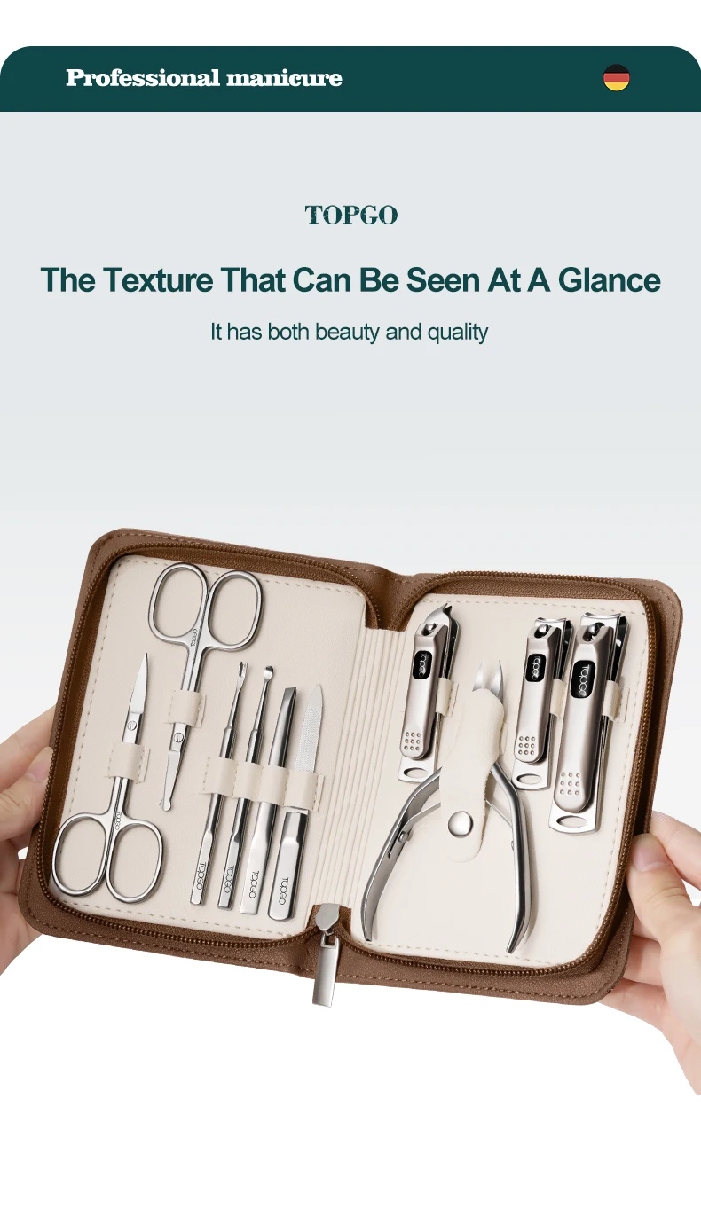 * Высококачественные материалы: Усовершенствованный маникюрный набор Topcom изготовлен из высококачественной нержавеющей стали. Инструменты эргономичные, прочные и прочные.