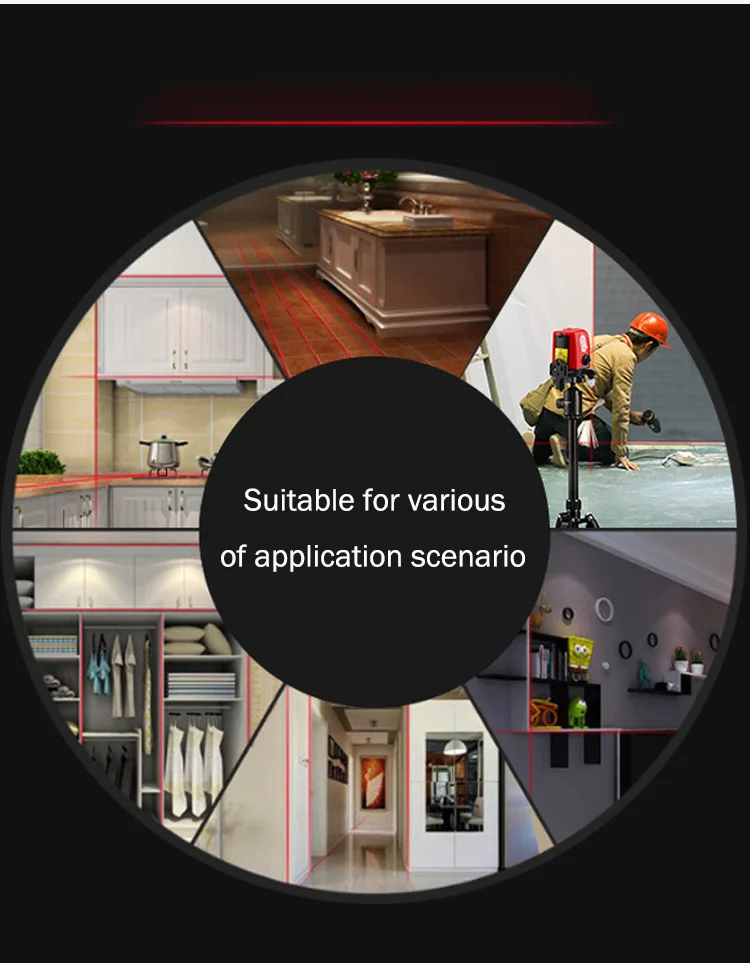 1. Поперечная линия режим-излучает и проецирование на лазерный Крест линии на плоских поверхностях с высокой точностью ± 2,5 мм на 5 метров. Идеально подходит для выравнивания плитки, стен, окон, дверей и т. д.; Лазерный продукт класса II, выход <1 мВт