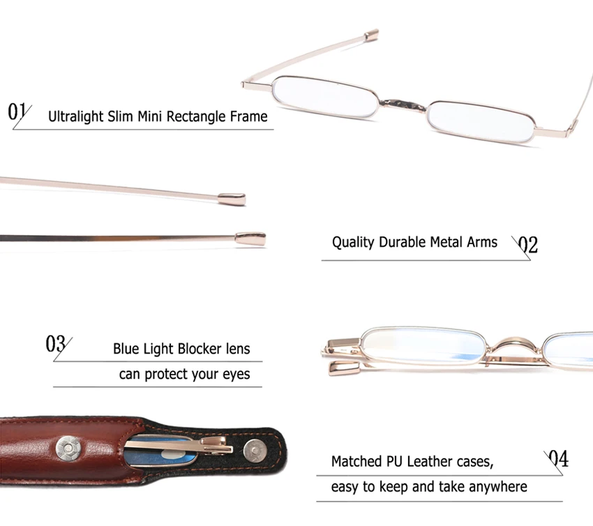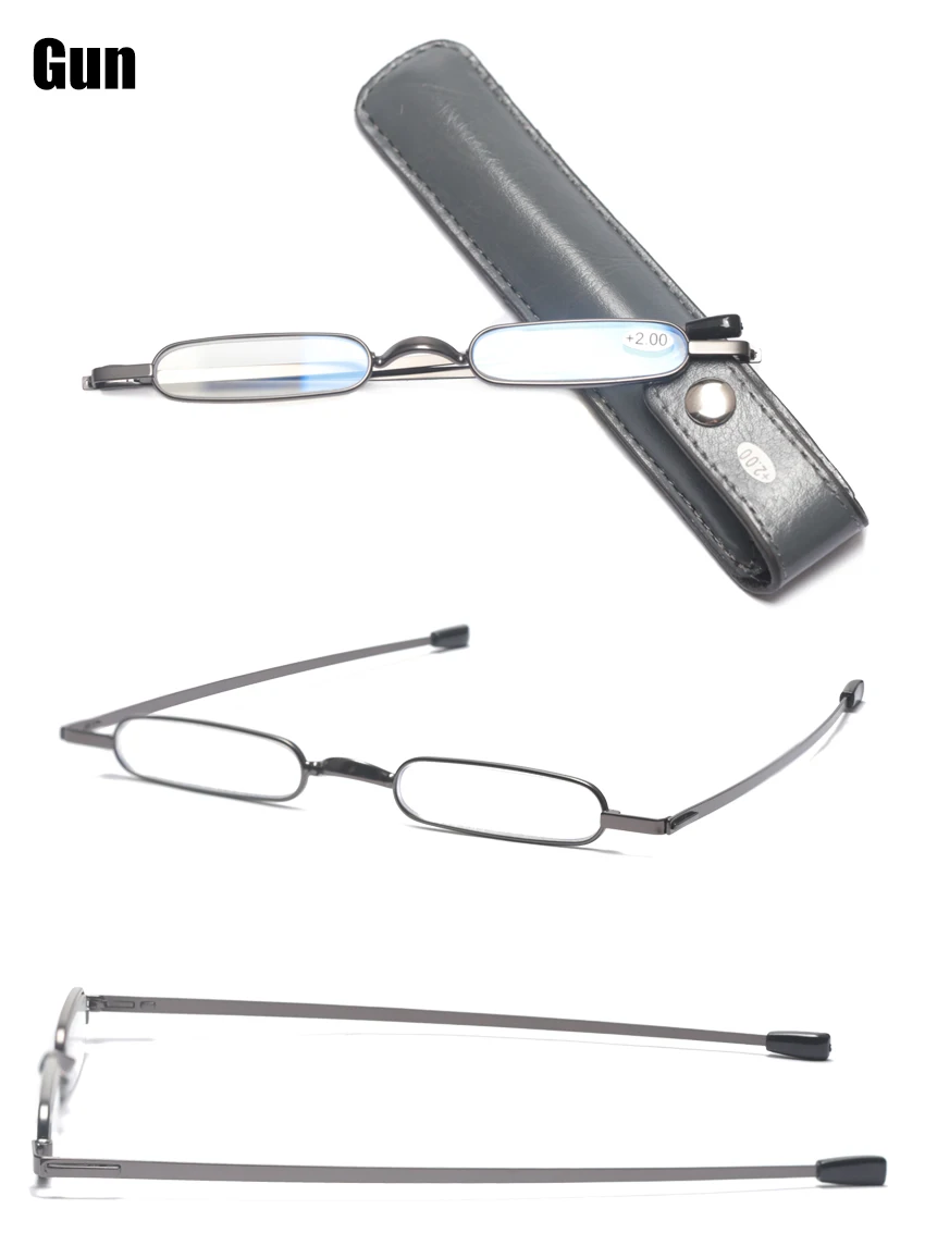 -SOOLALA металлический прямоугольник портативный тонкий мини анти-синий светильник очки для чтения с футлярами мужские и женские пресбиопические увеличительные очки