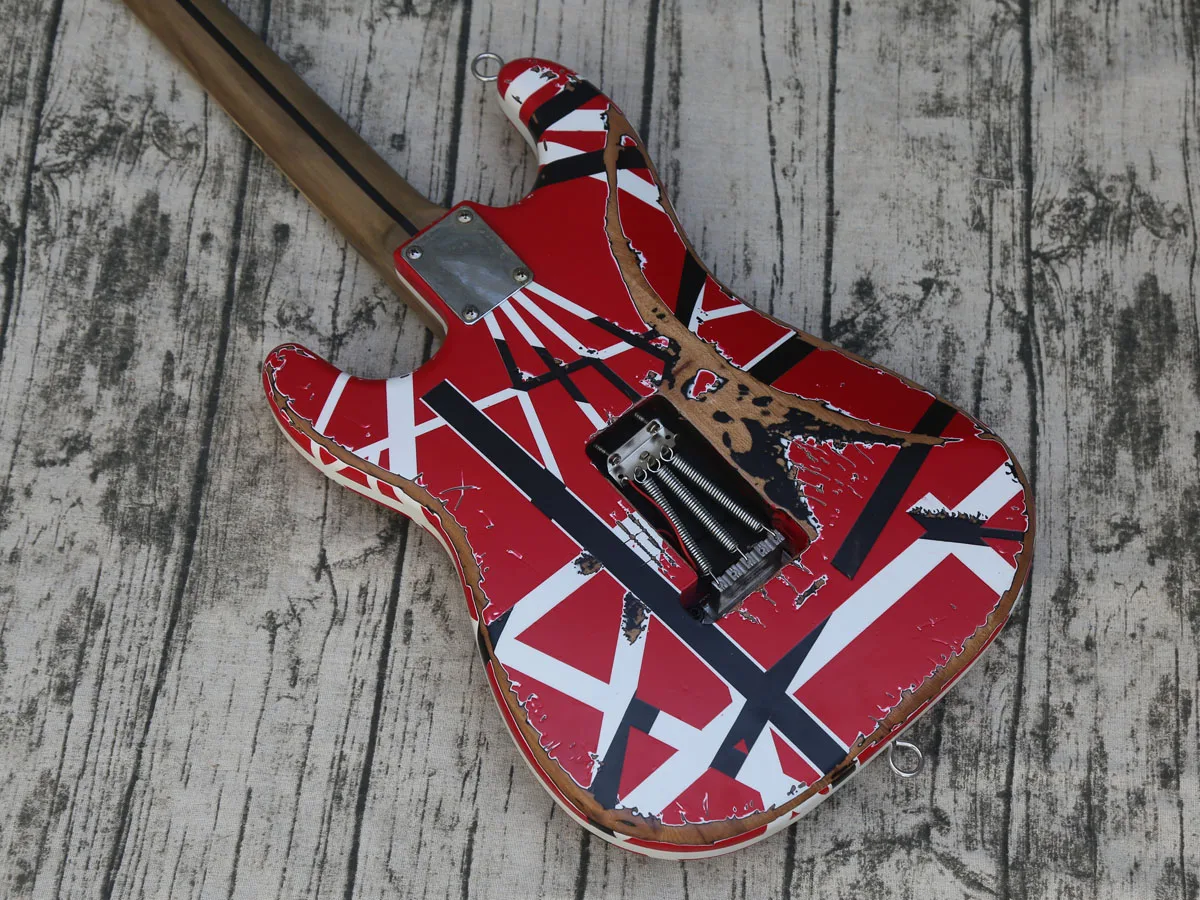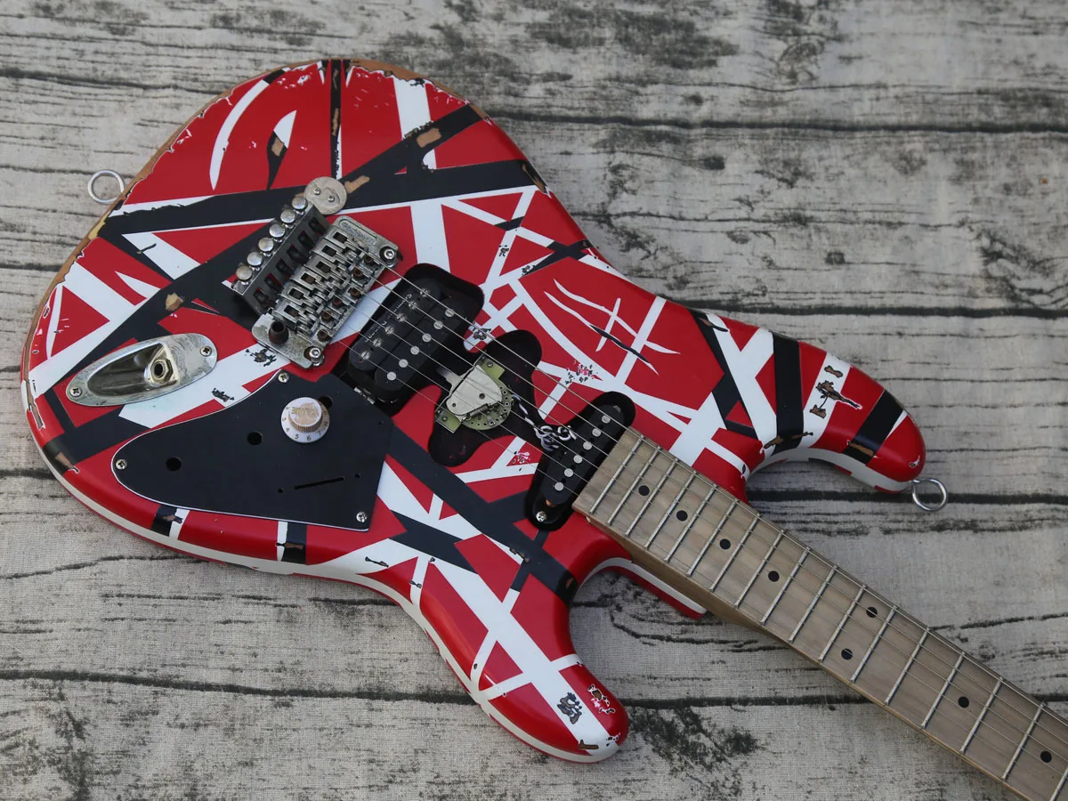 Aged Edward Eddie Van Halen Heavy Relic Striped Frankie электрогитара, Кленовая шея в форме банана, Floyd Rose Tremolo & Locking Nut