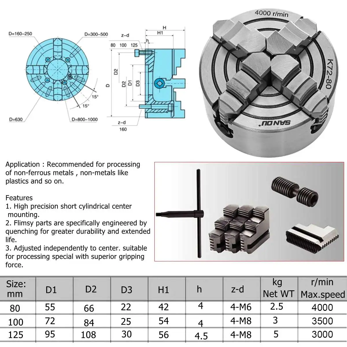 3. Регулируется независимо от центра. Подходит для специальной обработки с превосходной силой захвата.