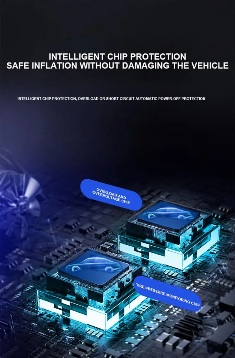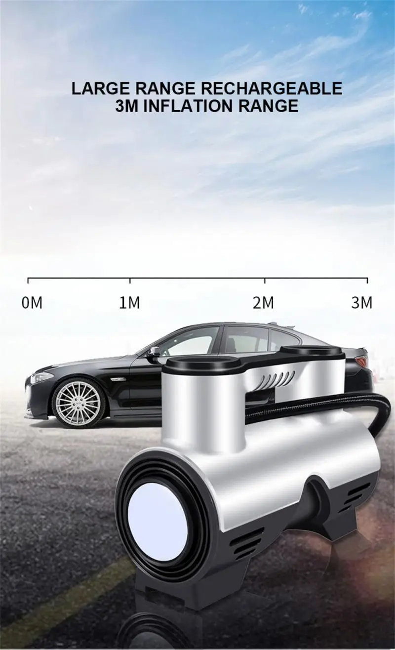 Интеллектуальное измерение давления, автоматическая зарядка и остановка, интеллектуальный цифровой дисплей, точная инфляция, металлический цилиндр, простая эксплуатация, защита от отключения питания. Поставляется с светодиодный подсветкой, заряжается ночью, чтобы осветить весь автомобиль. Интеллектуальная защита чипов, автоматическая защита от отключения при перегрузке груза коротка, безопасная инфляция, не повреждая автомобиль. Износостойкая нейлоновая плетеная надувная трубка, анти-замораживание, не ломается, Взрывозащищенная и высокотемпературная устойчивость.