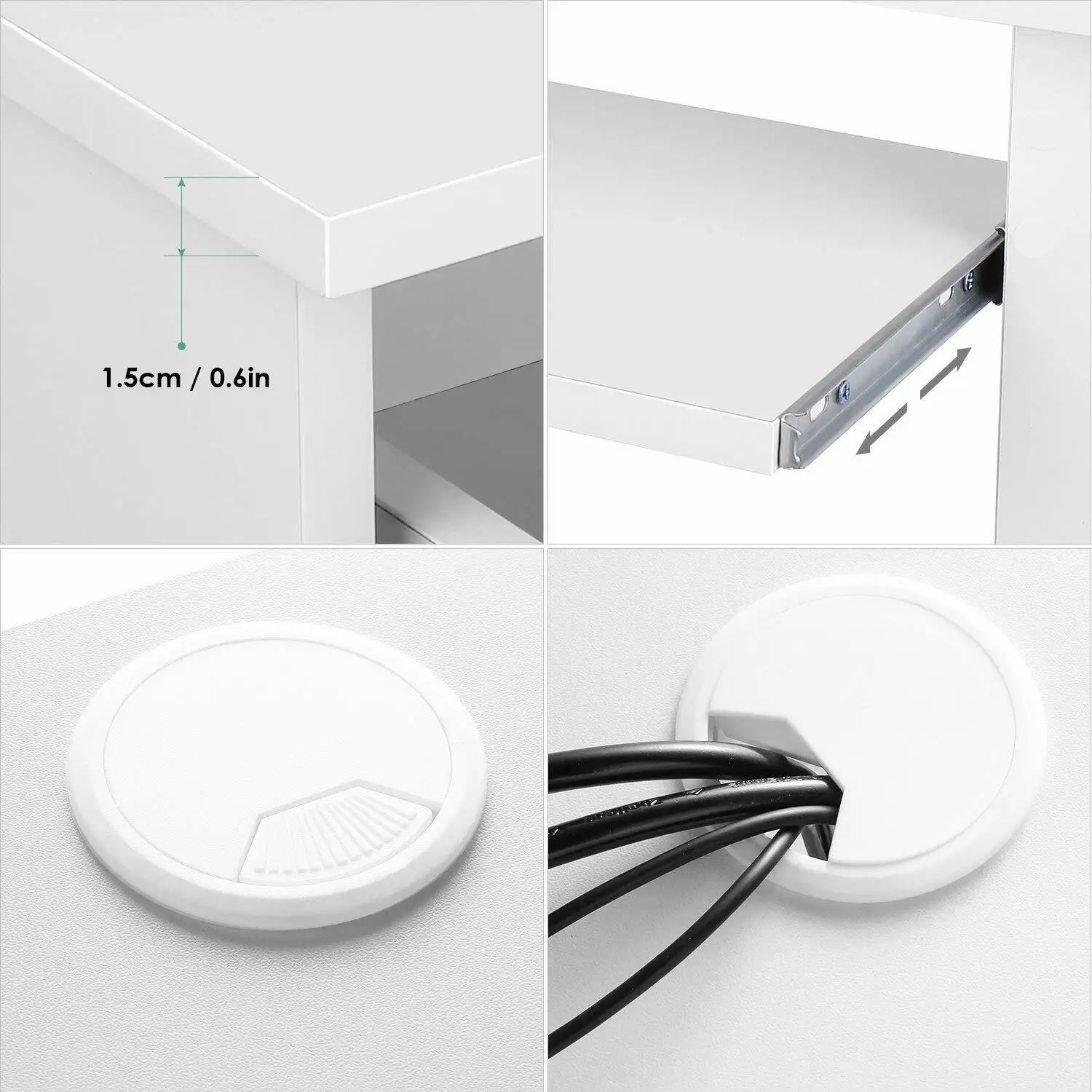 Инновационный дизайн: раздвижная полка для клавиатуры обеспечивает удобство для клавиатуры и мыши с низким уровнем шума при скольжении. Отверстие (может быть закрыто) на рабочем столе делает компьютерные кабели легко пройти.