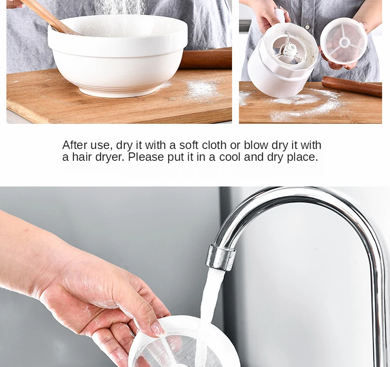 1. Один толчок для просеивания, эффективный и удобный: работает при 5600 об/мин (вращение в минуту),Электрический сито с питанием от батареи делает его более быстрым и легким в использовании, чем поворачивать рукоятку или сжимать ручку,Эргономичная ручка также очень легко и удобно держать и использовать. При просеивании сахарных порошков, пожалуйста, поставьте меньшие порции. Убедитесь, что сетчатый экран правильно установлен, а винт плотно крепится перед использованием, и держите сито низким, чтобы предотвратить диффузию порошков