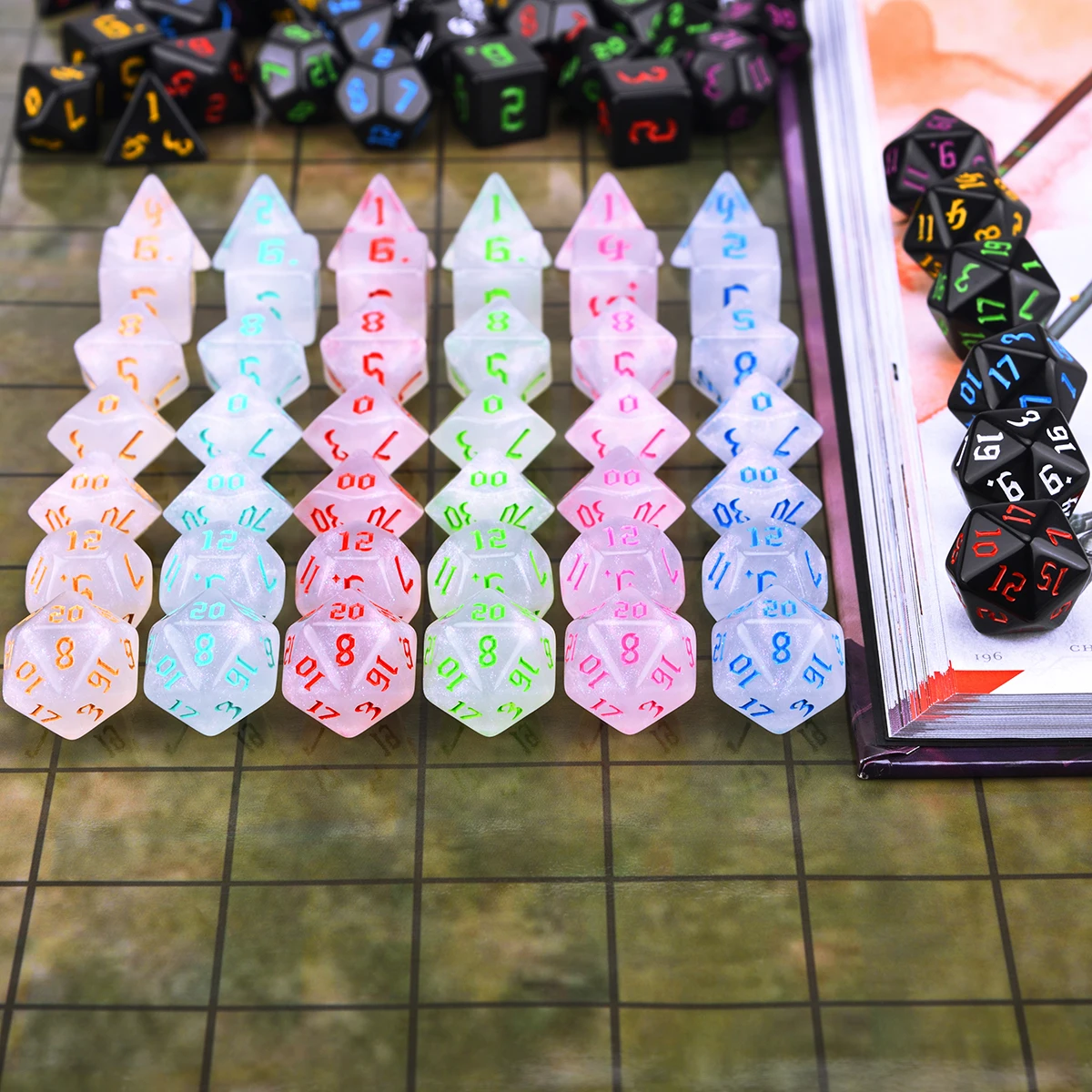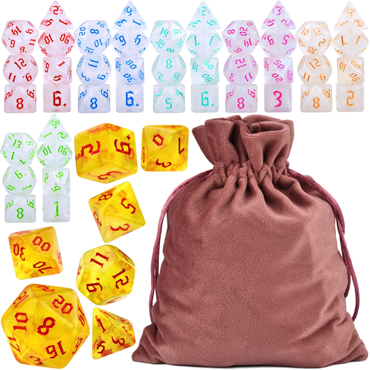 Переливающийся блеск 7 наборов многогранных 7-Die кости с сумкой
