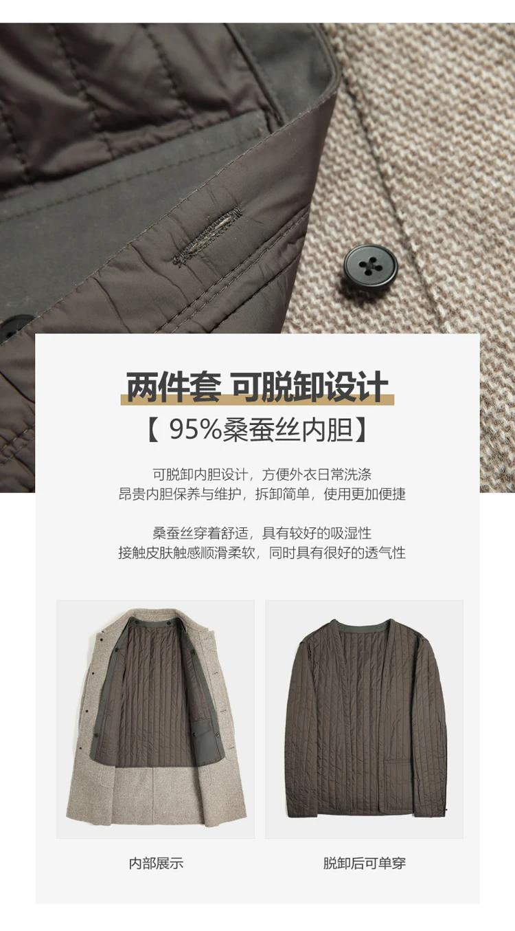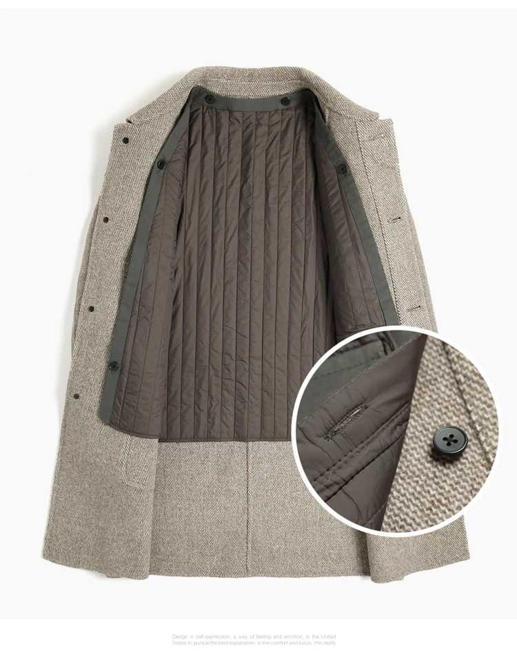 Это пальто изготовлено из высокопрочной морозостойкой овечьей шерсти. Шерсть имеет плотную текстуру, прочность, устойчивость к холоду, мягкие и гладкие характеристики, мягкое и плотное ощущение, удобный верх, светильник и тяжелое ношение.