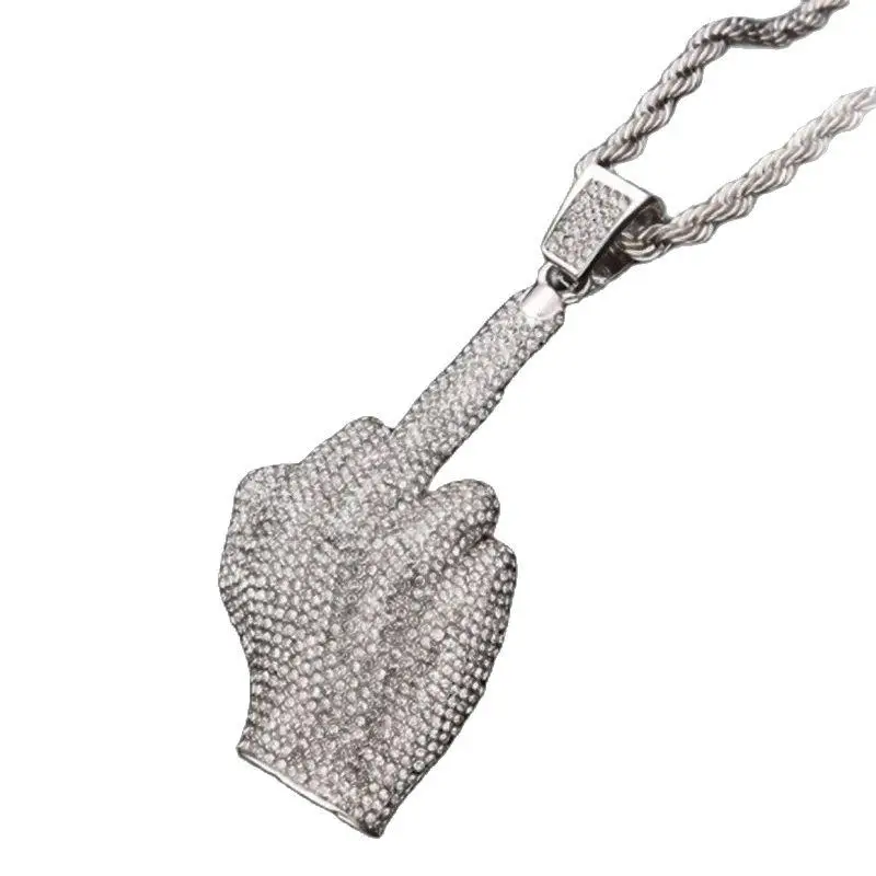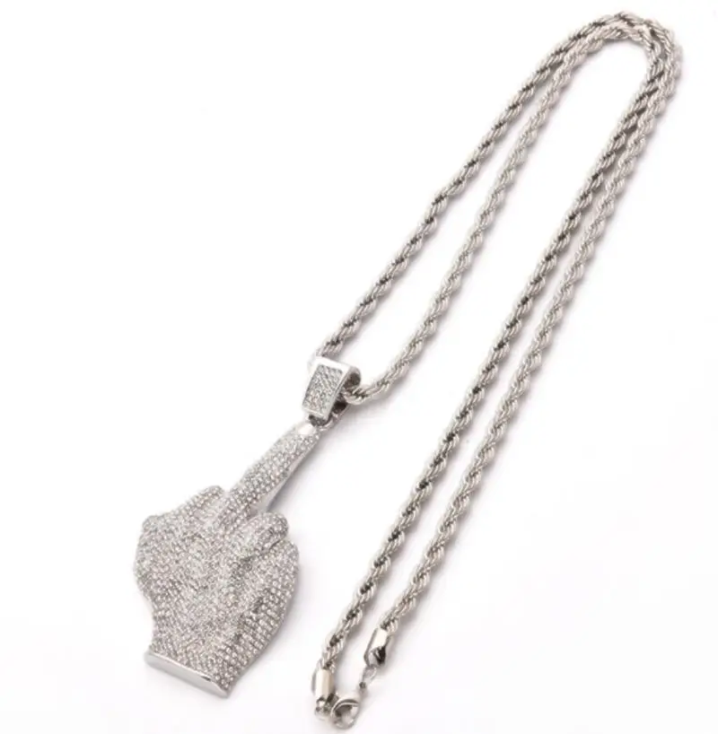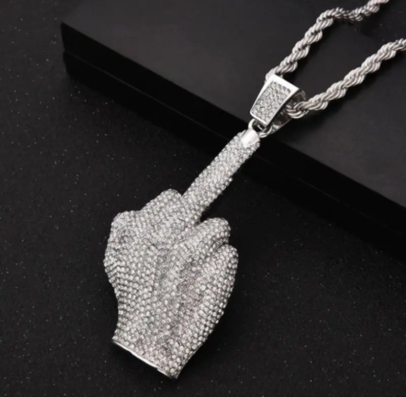 Модное мужское ожерелье в стиле хип-хоп в стиле рок с фианитом и кулак среднего пальца...Купить сейчас