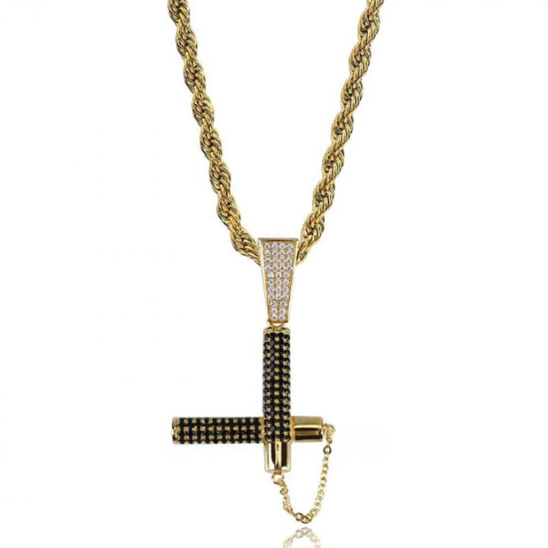 Модная крутая подвеска с пистолетом Мужская подвеска Золотая инкрустированная цирконием хип-хоп...Купить сейчас