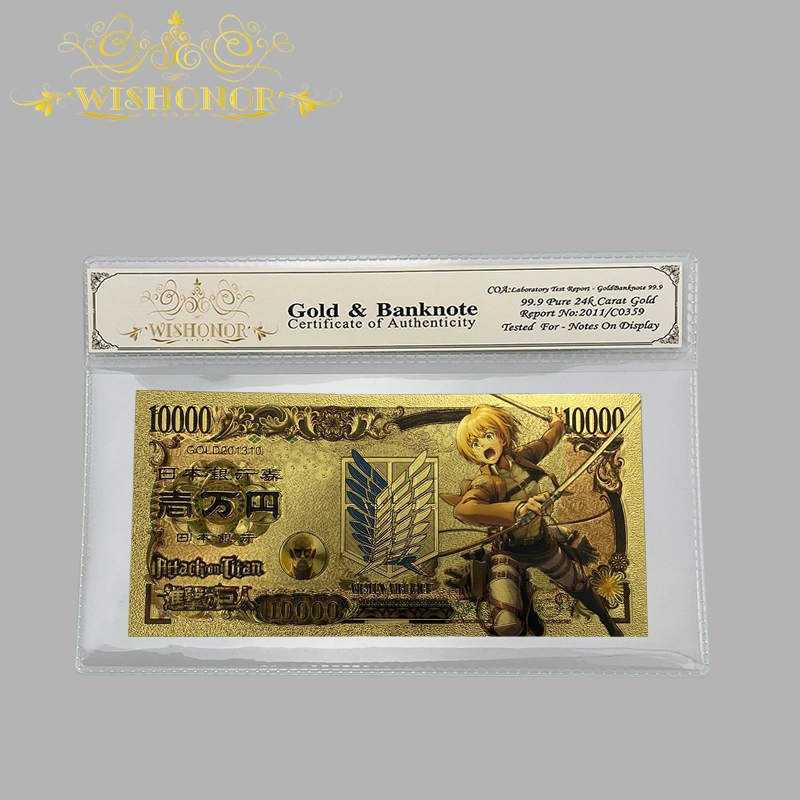 Название:2021 цветная японская аниме банкнота атака на Титанов банкнота в 24k золото с пластиковой рамкой COA для подарков и коллекции